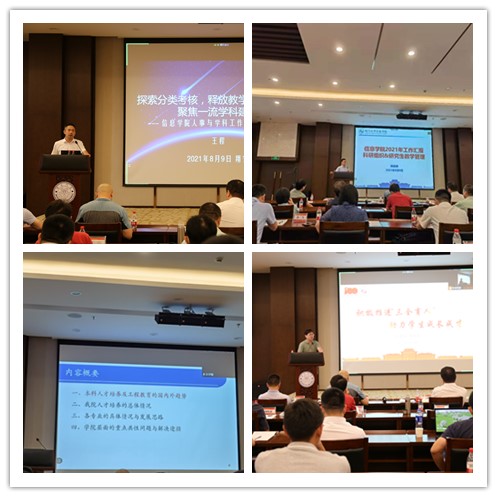 学院党委副书记、副院长王程,副院长姚俊峰、洪学敏,学院党委副书记郑镇锋分别围绕分管工作作专题报告,结合学习习近平总书记在庆祝中国共产党成立100周年大会上的重要讲话精神和重要贺信精神,对加强人才队伍建设与学科建设,强化有导向、有规划的科研组织,推进“三全育人”综合改革,加强人才培养内涵式发展等工作进行整体谋划、提出推进思路。
