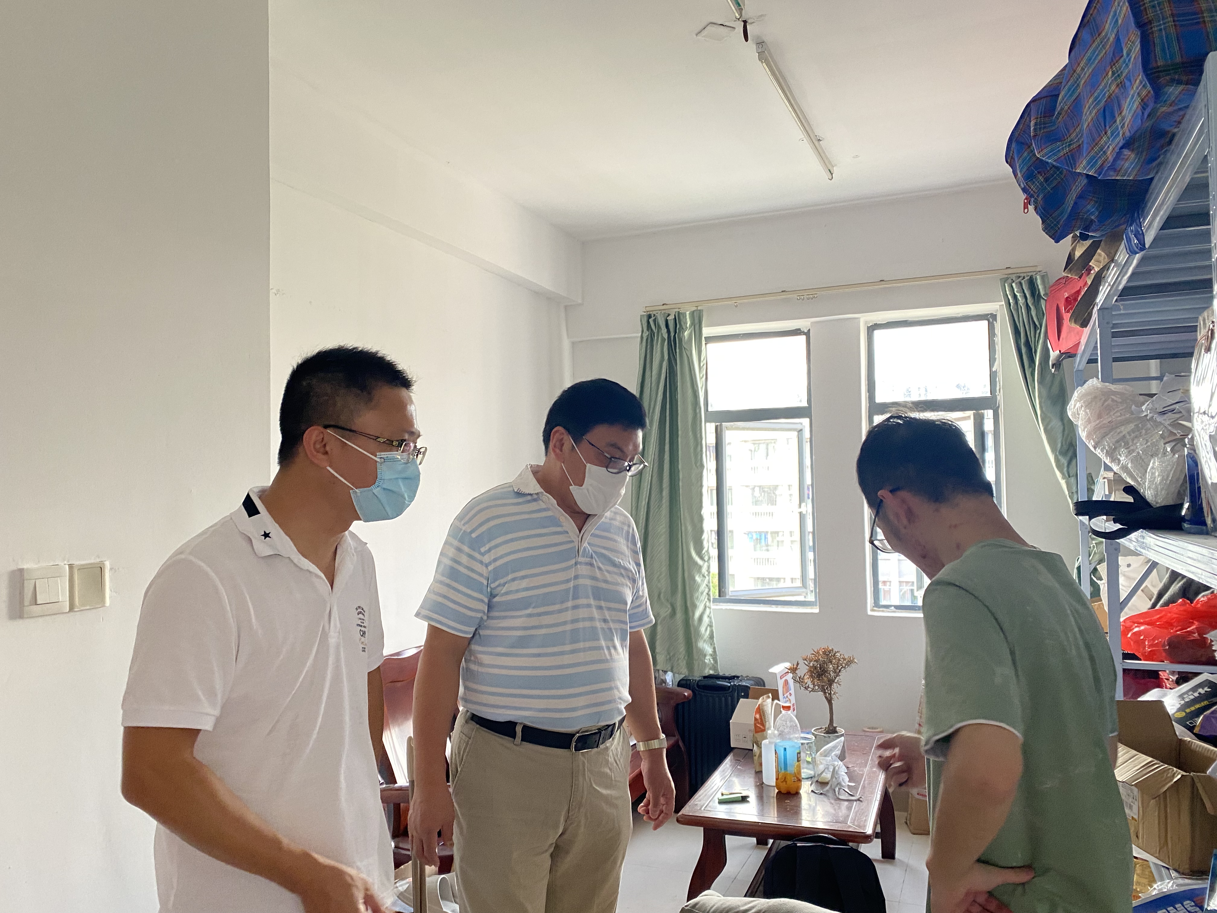 陶涛亲切询问同学们的暑期生活情况,认真倾听他们在暑期社会实践中的收获和点滴,嘱咐他们新学期的学习要劳逸结合,加强体育运动,增强自身免疫力,提振精气神,以昂扬的姿态迎接新学期。离开宿舍时,陶涛提醒同学们此次莆田市和泉州市泉港区的疫情来势汹汹,嘱咐他们要减少外出,遇到困难及时向学院领导和辅导员反馈,共同解决。