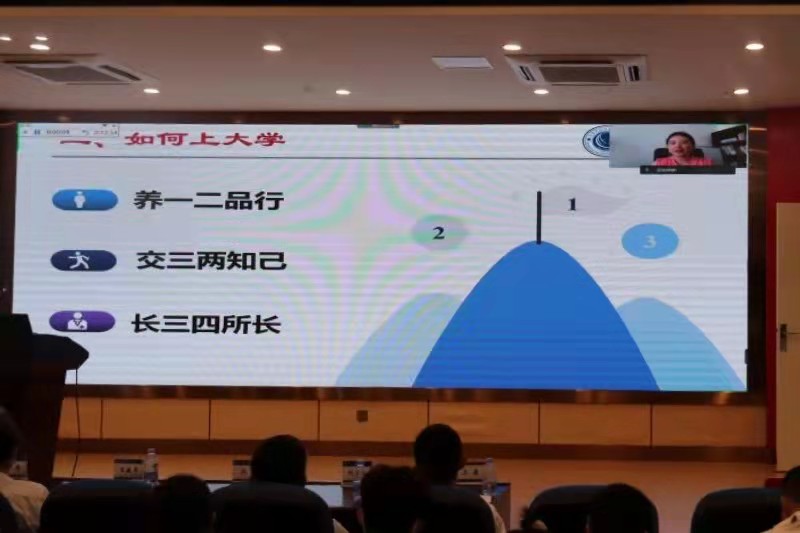 柳娟老师通过线上视频连线为同学们带来了分享,她分享了自己对于如何度过大学时光的看法,认为在大学中首先要达到自己的品质优秀,其次需要结交一些知心好友。求学时光是培养自己的能力、开阔眼界最好的时机,希望同学们拥有一段快乐充实的大学时光。