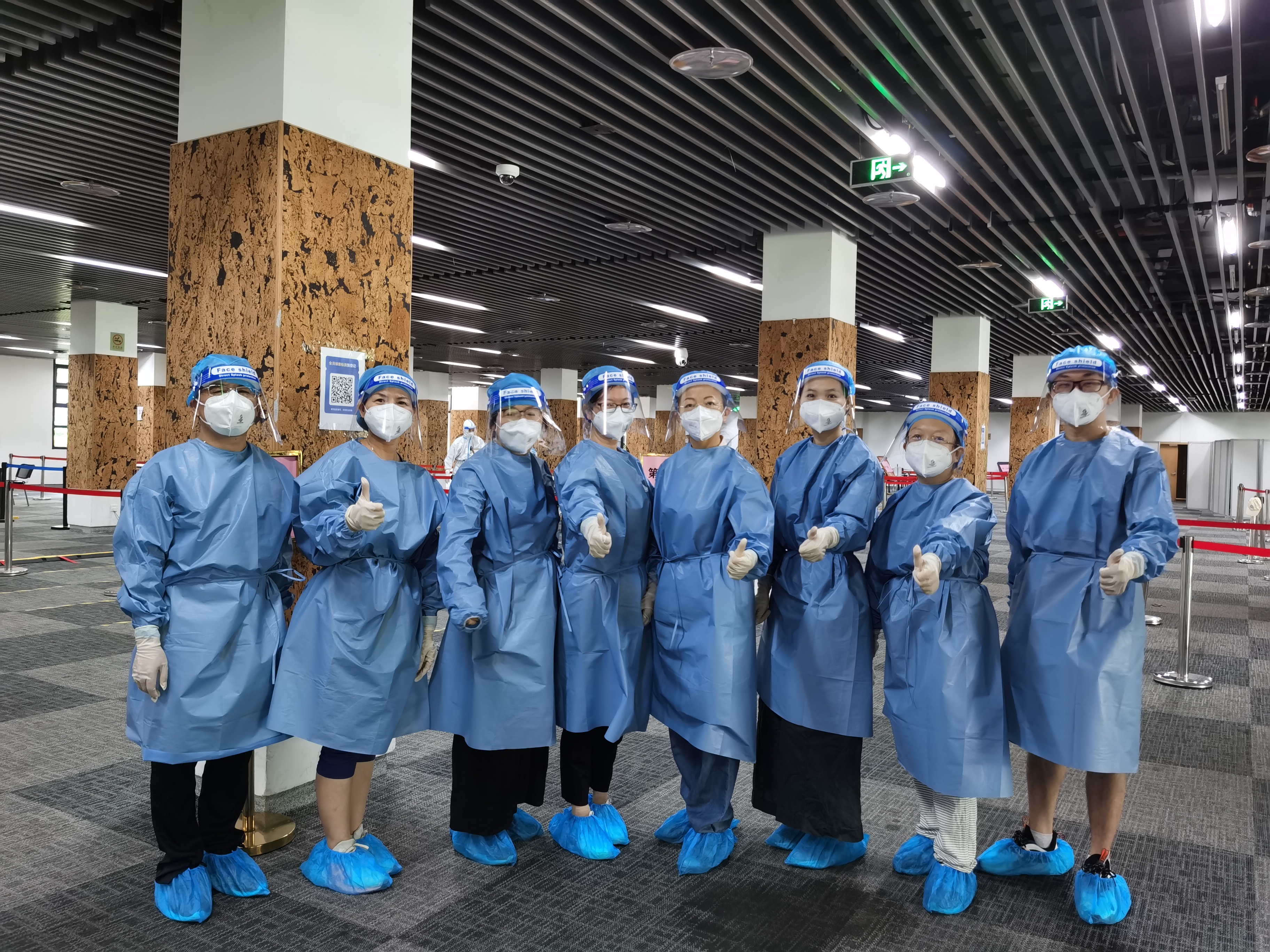 在校园志愿防疫工作中,9月22日清晨6点30分,在资产公司党委书记黄宇霞、厦门大学党建巡察员郑建华的带领下,志愿者们早早来到厦门大学科艺中心,助力学校开展核酸检测疫情防控工作。在简单的志愿者培训后,他们穿上蓝色防护服,为志愿服务工作连续站立4个小时,有条不紊地维持现场秩序,确保采样工作稳步有序进行。