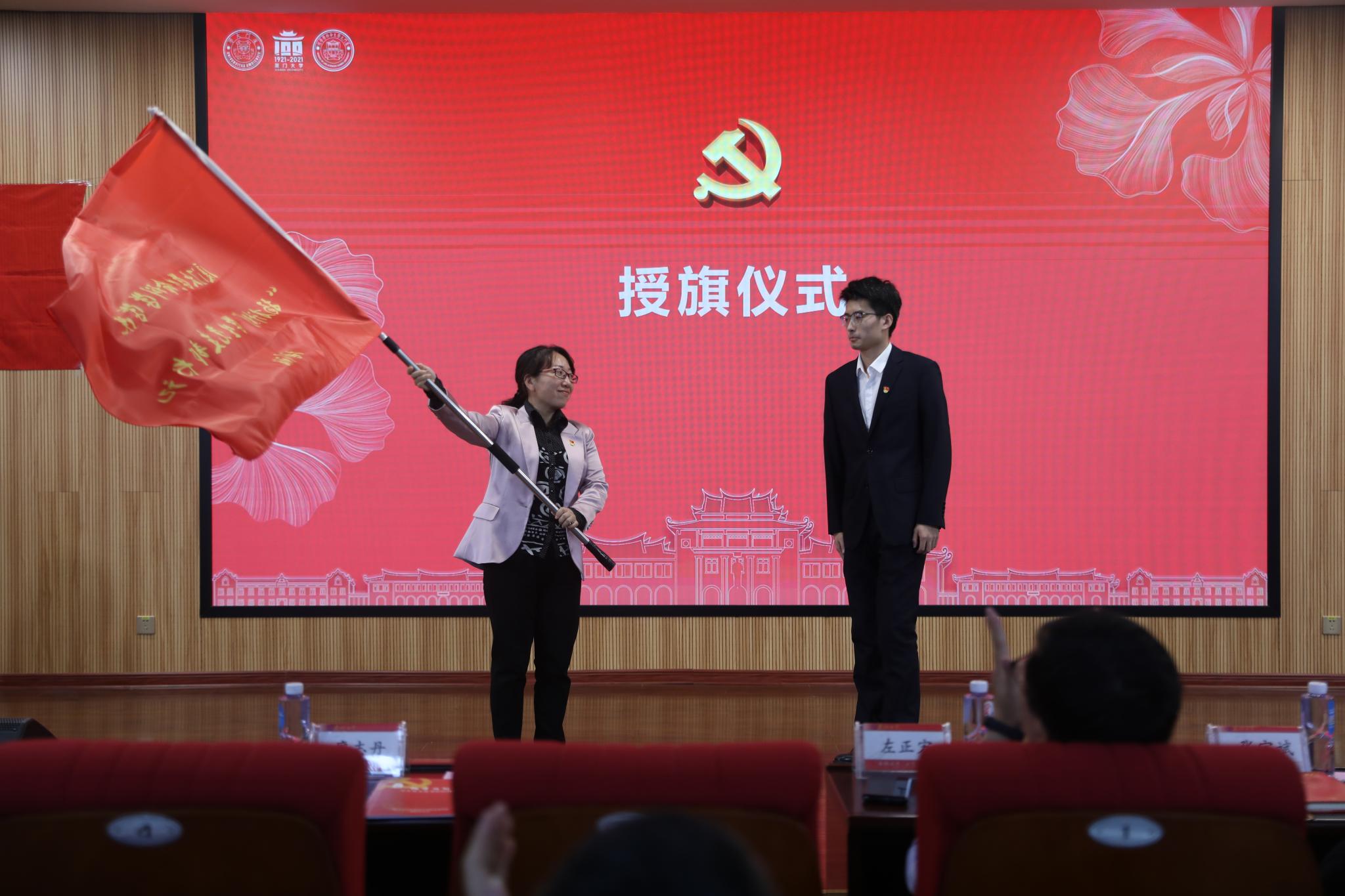 仪式上,校党委党建办主任、组织部副部长廖志丹为第三期“扬才计划”学生党支部书记培训班授旗,并与左正宏一同为培训班学员代表赠书。希望第三期“扬才计划”培训班全体学员要进一步传承和发扬“扬才人”的精气神,勤学善思、强化理论武装,做到学史明理、学史增信、学史崇德、学史力行。