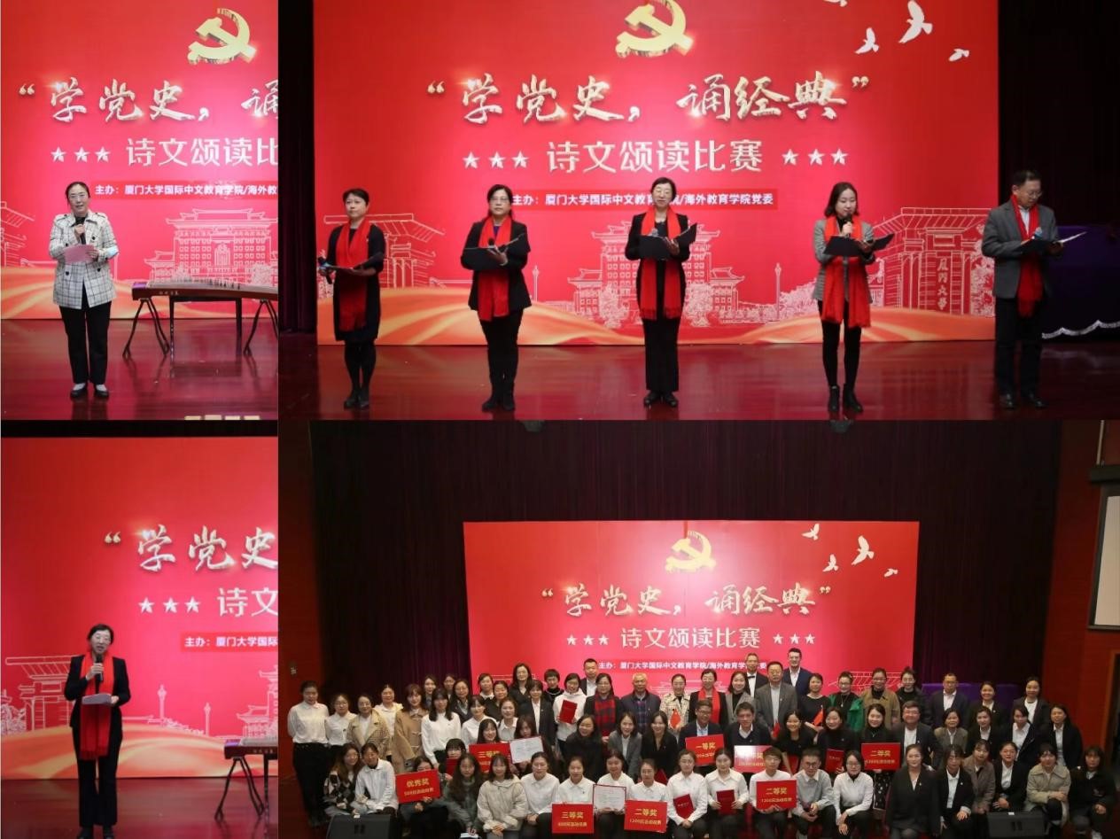 为扎实推进党史学习教育,重温党的光辉历程,歌颂党的伟大成就,国际中文教育学院/海外教育学院“学党史,诵经典”诗文颂读比赛于12月20日下午举行。校党史学习教育第四指导组副组长林金宝,校党委组织部、国际中文教育学院/海外教育学院等单位师生代表参加活动。