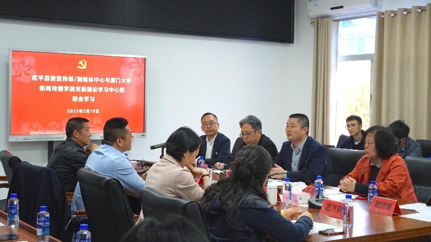 在中心组联合学习会上,武平县融媒体中心主持工作副主任王发祥从组织领导、媒体融合、资金保障、平台建设、人才培养、融媒运行、矩阵宣传、服务群众八个方面详细介绍了武平县融媒体中心的建设成果和机制创新。副院长苏俊斌作《媒体融合与基层社会治理》专题发言,指出县级融媒体中心建设是一个传统媒体和新兴媒体“双向奔赴”的过程,有助于增强党的新闻舆论工作的传播力、引导力和公信力,通过技术赋能、文化赋能,助力基层治理体系和治理能力现代化,促进基层善治、实现中国之治。培训班师生分别从实践探索、学术研究、经验学习、合作方向等方面与融媒体中心相关负责人员展开交流,共同展望校地、校企合作的美好前景。