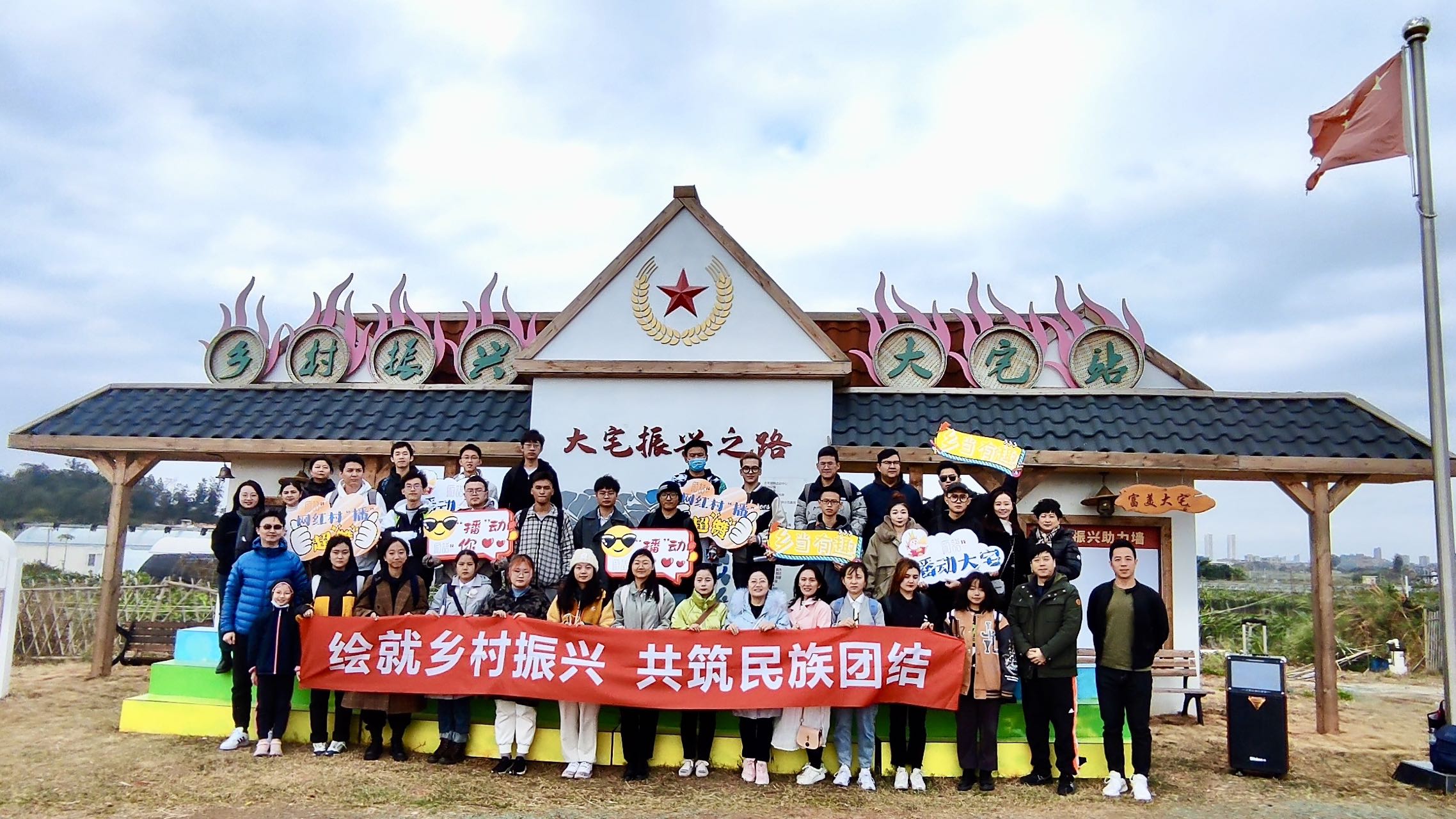 “红船精神,是开天辟地、敢为人先的首创精神,是坚定理想、百折不挠的奋斗精神,是立党为公、忠诚为民的奉献精神……”在少数民族预科班辅导员王骥洲的讲解中,来自“石榴籽”少数民族学生骨干培训班、少数民族预科班的师生们沿着“百年党史大道”一路走、一路听、一路学,在欣赏1400亩火龙果田美好风景的同时上了一堂精彩的田间党课。正值厦门经济特区建设40周年,在党中央的坚强领导下,大宅村以乡村振兴示范村建设为契机,以火龙果的产业特色,将乡村旅游与农业生产、农村风貌、农民生活深度融合,探索出了“建设火龙果绿色生态产业链”的特色发展、乡村振兴发展模式,让同学们亲身感受了厦门经济特区社会主义新农村建设的伟大实践,也明白了“乡村振兴,关键在党”的深刻道理。