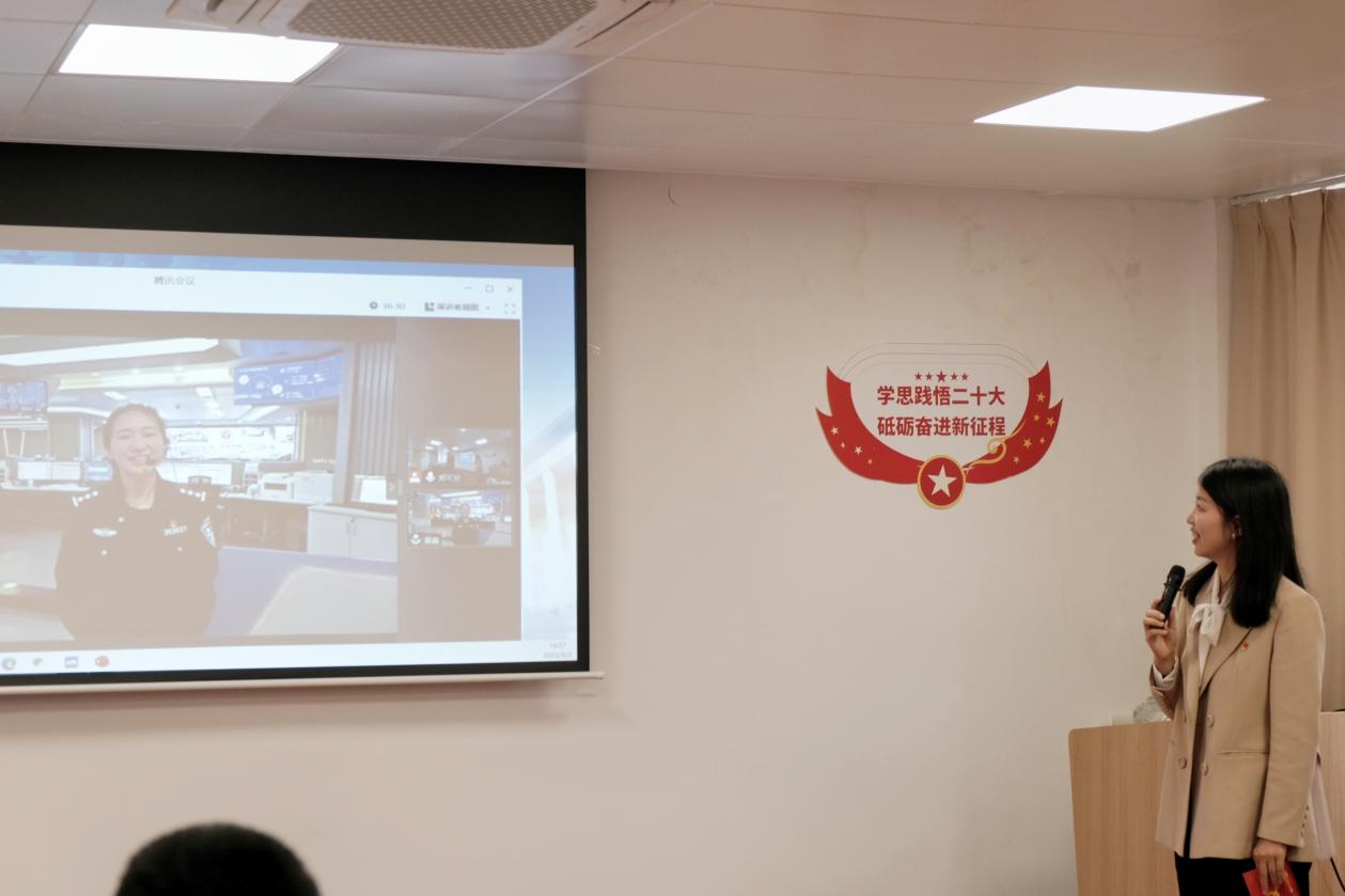 宣讲活动还现场连线了厦门市公安局指挥情报中心。三级警长黄泽昀带大家云上参观了指挥情报中心,介绍了警员接警、警情分流、寻人服务等相关内容。二级警长陈东方介绍了厦门110法治建设的基本情况,展现了厦门市公安局指挥情报中心在多功能协同作业模式的构建等领域取得的成就。