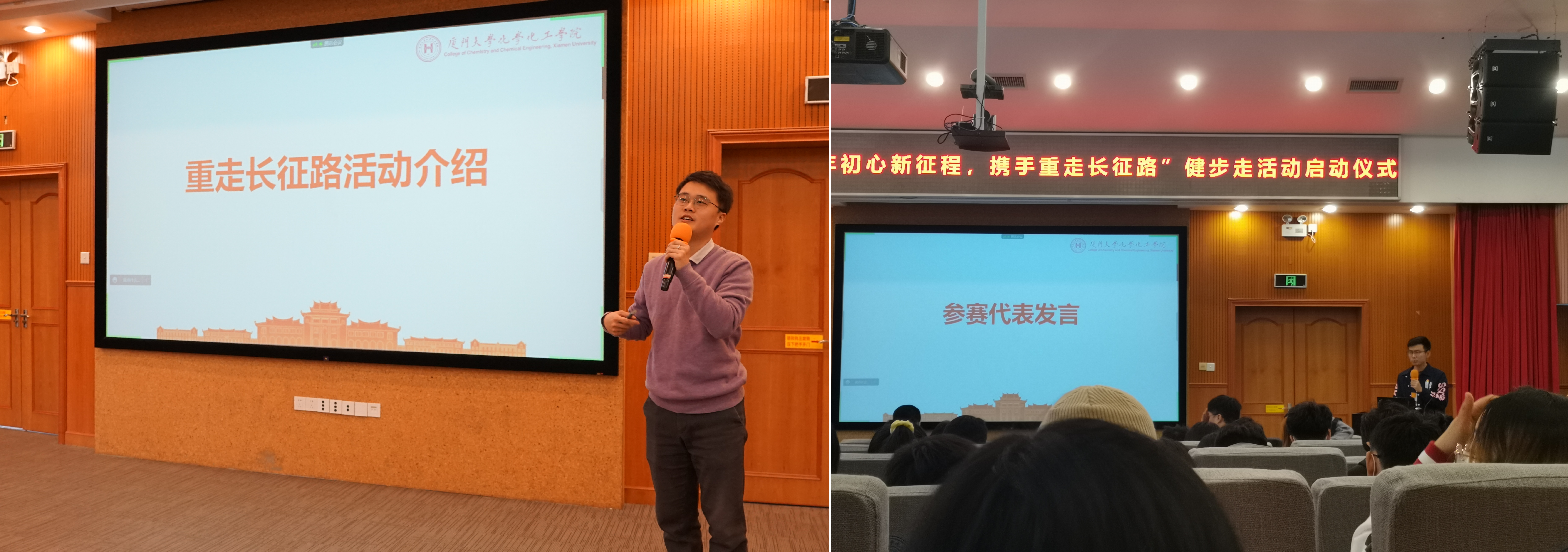 2021年12月31日下午,化学化工学院“百年初心新征程,携手重走长征路”百日健步走活动启动仪式于思明校区化学报告厅举行,翔安与漳州校区通过视频连线的方式同步进行。本次“新征程”之重走长征路健步走活动旨在不断巩固拓展党史学习教育成果,学习贯彻党的十九届六中全会精神,积极推动全民运动,努力提高全体师生的身体素质。