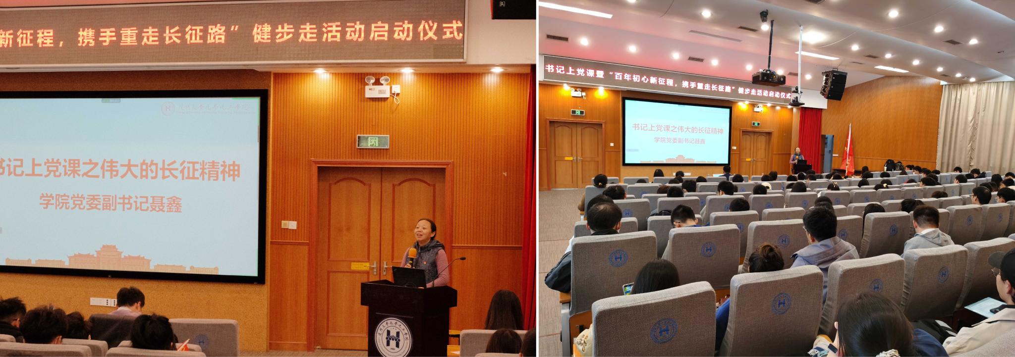 学院党委副书记聂鑫向全体师生讲授 “学习长征精神”主题微党课。党课开始,聂鑫老师通过重温长征的艰苦奋斗历程,深刻阐释了理想信念是人的精神支柱、是人们行动力量的源泉。她表示要通过重走长征路、重温红军长征艰苦卓绝的光荣历史,缅怀革命先辈的光辉事迹,大力弘扬乐于吃苦、不惧艰难的革命乐观主义,弘扬勇于战斗、无坚不摧的革命英雄主义,弘扬善于团结、顾全大局的集体主义的长征精神,坚定师生理想信念。