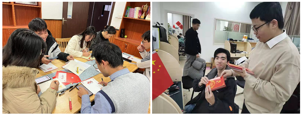 “写一封贺卡真心祝愿,送一腔祝福虎年吉祥。”在辞旧迎新之际,院研究生会成员和2020级硕士班班委们一起亲笔书写了祝福贺卡送给留校的同学们,传递集体的关怀与传统佳节的浓厚温情。