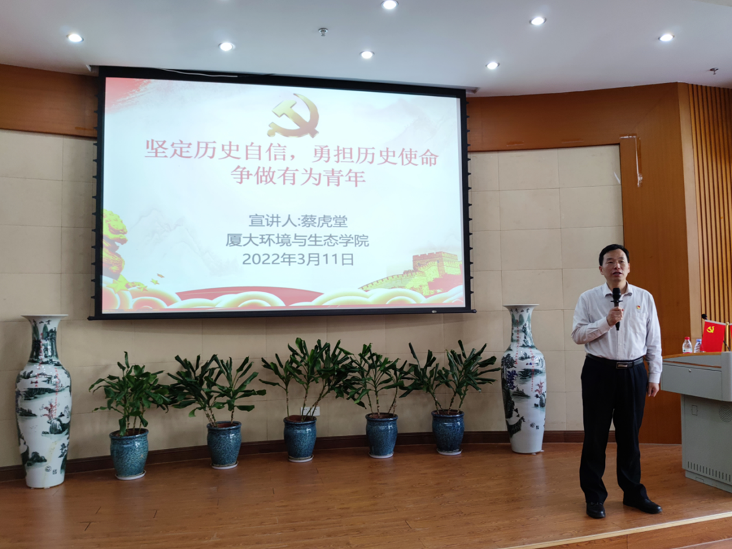 为迎接中国共产主义青年团建团一百周年,深入贯彻学习习近平总书记系列重要讲话精神,3月11日中午,环境与生态学院在金泉楼B103举办“坚定历史自信,奋斗创造未来”2022年团员教育意识活动月启动仪式。