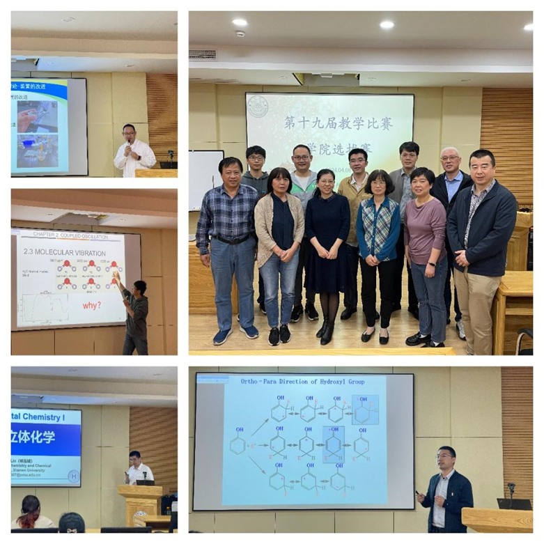 4月8日,厦门大学化学化工学院第十九届青年教师教学技能比赛在化学楼234会议室举行。经学院各系推荐和资格筛选,范凤茹、林泓域、梁汉锋、杨晔、卓春祥五名青年教师参加本届比赛。学校委派数学科学学院杜妮副教授担任指导专家进行现场指导。学院主干课程组长和资深教师受邀担任比赛评委。学院领导和工会负责人出席比赛活动。