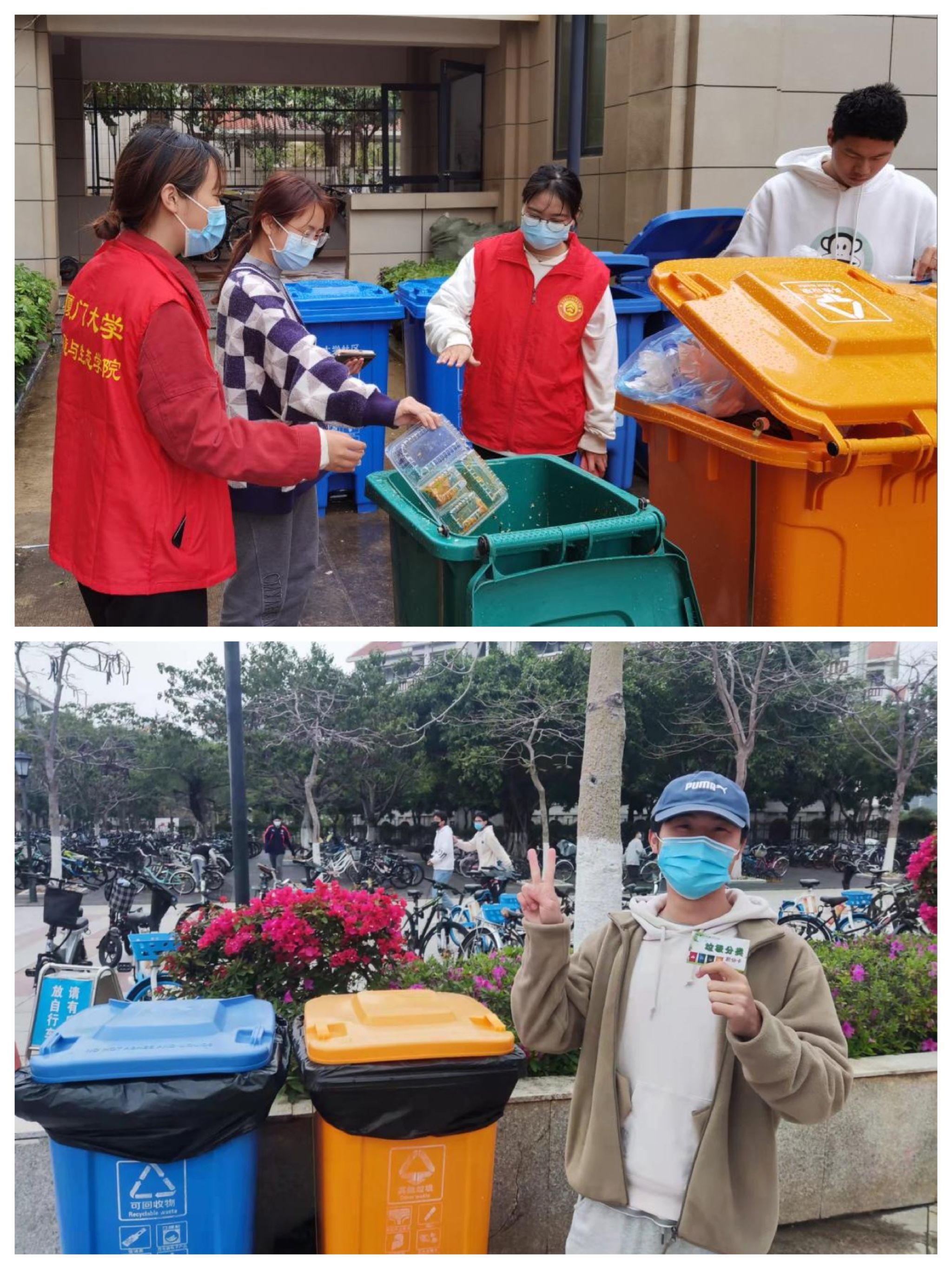 在支部党员的宣传带动下,学院共有100余名志愿者报名成为垃圾分类宣传志愿者,他们在各园区垃圾站督导同学们做好垃圾分类工作,纠正部分同学的错误分类,帮助后勤人员维持垃圾站秩序。