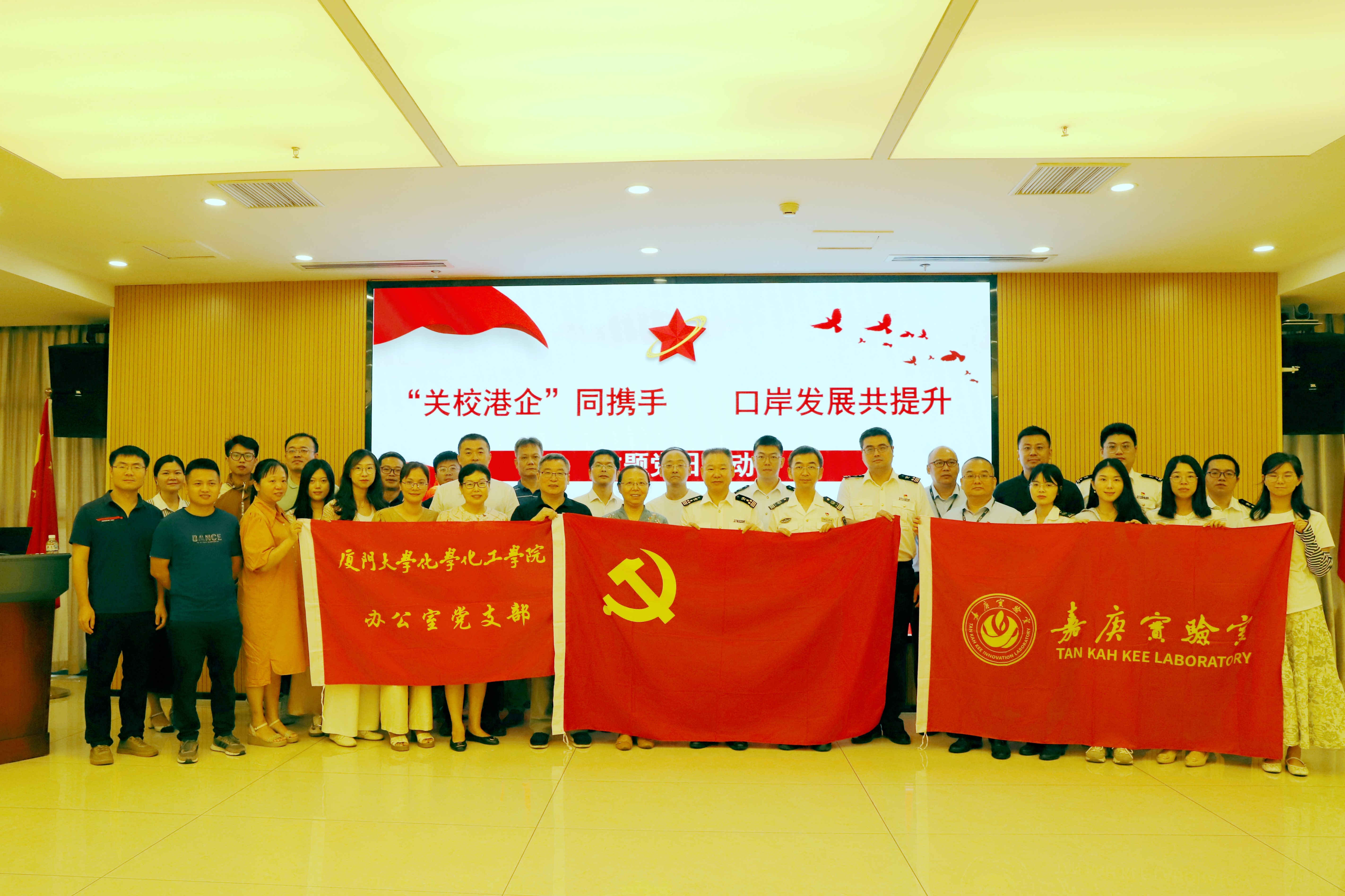 为深入学习贯彻习近平总书记关于发展新质生产力的重要论述,合力构建厦门港“新三样”安全出海新模式,推进厦门港关港航贸一体化发展,6月25日,应厦门海关所属东渡海关邀请,厦门大学化学化工学院办公室党支部、电化学教工党支部以及嘉庚创新实验室党支部,与东渡海事处、厦门集装箱码头集团有限公司、厦门现代码头、厦门金龙联合汽车工业有限公司等多家单位党支部四十余位党员齐聚东渡海天码头,共同开展以“‘关校港企’同携手,口岸发展共提升”为主题的专项调研及合作共建工作。