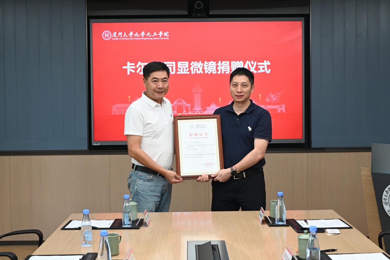 为感谢卡尔蔡司(上海)管理有限公司捐赠6台光学显微镜以支持学院人才培养和科研创新,化学化工学院于9月30日在卢嘉锡楼215会议室举行蔡司显微镜捐赠仪式。蔡司大中华区副总裁、研究显微镜解决方案事业部负责人张育薪博士,显微镜材料科学负责人黄铭刚,业务拓展经理王贤浩和区域销售经理陈哲出席仪式。化学化工学院党委书记宋毅、学校教育发展基金会秘书处副秘书长徐滨,学院教学与实践中心、分析测试中心及学院办公室负责人和相关工作人员,学科教师代表以及博士后参加仪式。