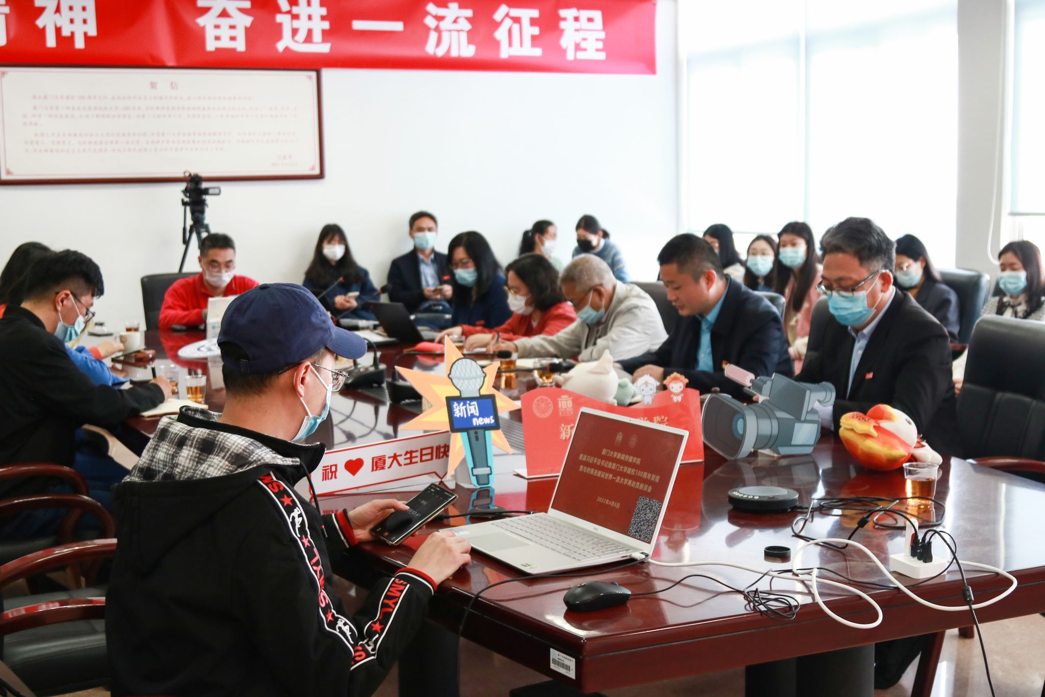 4月6日上午,厦门大学召开重温习近平总书记致厦门大学建校100周年贺信暨与时俱进建设世界一流大学再动员大会,学校文庆奖学金获得者、新闻传播学院2018级本科生温欣作为学生代表在大会上发言。全院师生以线上形式集体观看本次大会。在学院分会场,校基层党建联络员潘宝柱,学院党政领导、党委委员、系主任、教工党支部委员、教师和学生干部代表共同收看大会并参加座谈会。座谈会由院党委书记曾铮主持。