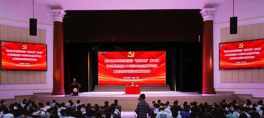为深入学习贯彻党的二十届三中全会精神,落实学校党委关于党员教育培训工作的要求,11月17日上午,化学化工学院在建南大会堂举办2024年师生党员专题教学第二讲暨第45期“先锋讲坛”,此次活动也是学院第12期“雁阵工程”学习贯彻党的二十届三中全会精神学习班的专题辅导报告。学院党委书记宋毅,院党委领导班子成员,全院师生党员,“红心向党”成长营之学生入党积极分子、新发展党员近1800人参加学习,翔安校区、漳州校区分会场同步线上学习。