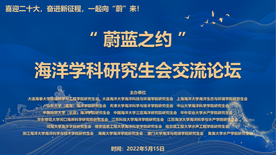 为进一步凝聚海洋学子团结进取、奋勇争先,发挥海洋强国战略的青春力量,5月15日下午,“蔚蓝之约”高校海洋学科研究生会交流论坛通过线上视频会议的形式顺利举办。来自国内19所高校的上百名海洋学科研究生会骨干参加。