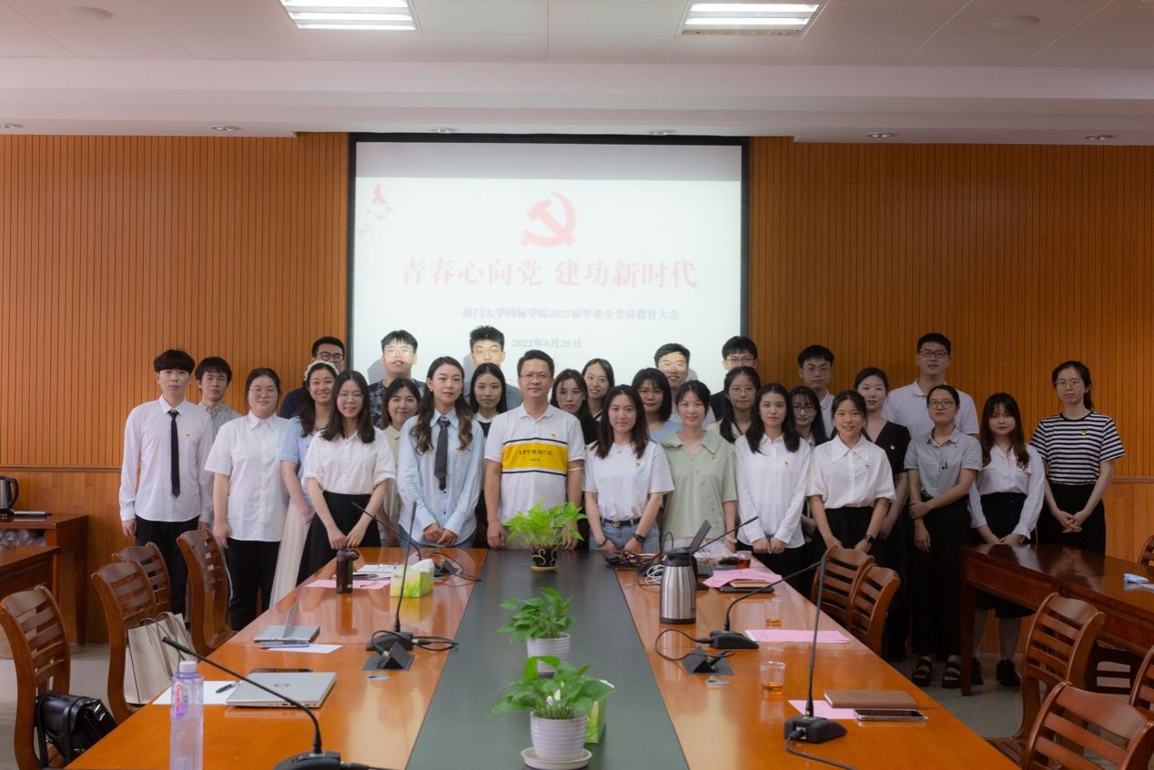 6月20日,国际学院在翔安校区坤銮楼A104召开“青春心向党,建功新时代”2022届毕业生党员教育大会。