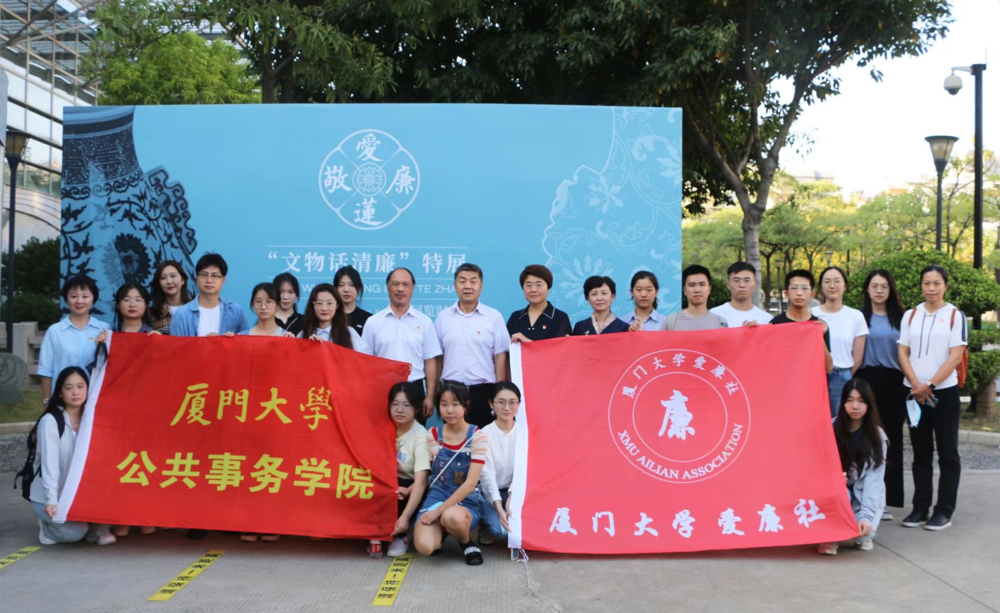 为了深入学习贯彻党的二十大精神,加强学院廉洁文化建设,引导广大青年学生自觉加强党性修养,提高廉洁自律意识,11月11日下午,厦门大学学生廉洁文化理论研究社团爱廉社举办“爱莲敬廉——文物话清廉”特展参观活动。厦门大学党委副书记、纪委书记、监察专员全海,公共事务学院党委书记刘艳杰,学工组全体辅导员和爱廉社成员代表一起参观了此次特展。