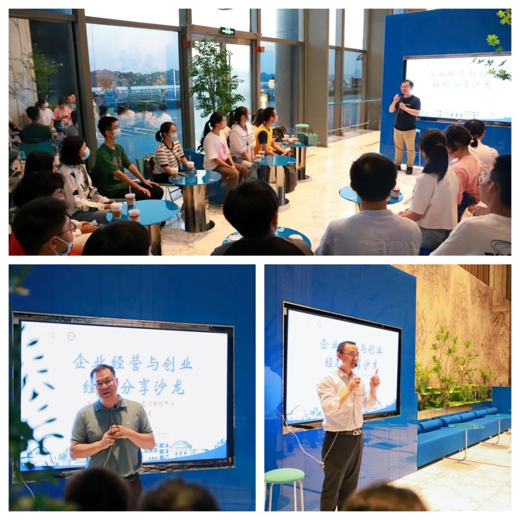 在随后的企业经营与创业经验分享沙龙活动中,学院团委邀请经济学院1989级校友、福隆集团常务副总王江斌先生,经济学院1998级校友、大北农谷玉投资集团副总裁熊东先生以及经济学院1988级校友、华西证券厦门分公司总经理吴强先生三位学长分别从个人学习、自我规划、创业理念等方面分享自己的从业经历,为同学们提出学习、工作的意见建议。王江斌首先就“我是谁”“我准备去哪里”“我怎么到达”三个方面提出对大学生现阶段的成长思考。他指出,不管是就业还是创业,大学生都应注重自我分析,巩固文化基础,提高专业水平,确立阶段目标,制定相应计划。熊东则以自身经历为起点,向大家讲述了自己从媒体行业转向金融行业的心路历程,强调了资源整合对于就业、创业的重要性。吴强提出“就业或创业,兴趣是最好的老师”,也正是他对证券深厚的兴趣,使他在低谷期时也能坚持在这条道路上走下去。他勉励同学们脚踏实地,提升自我,厚积薄发。