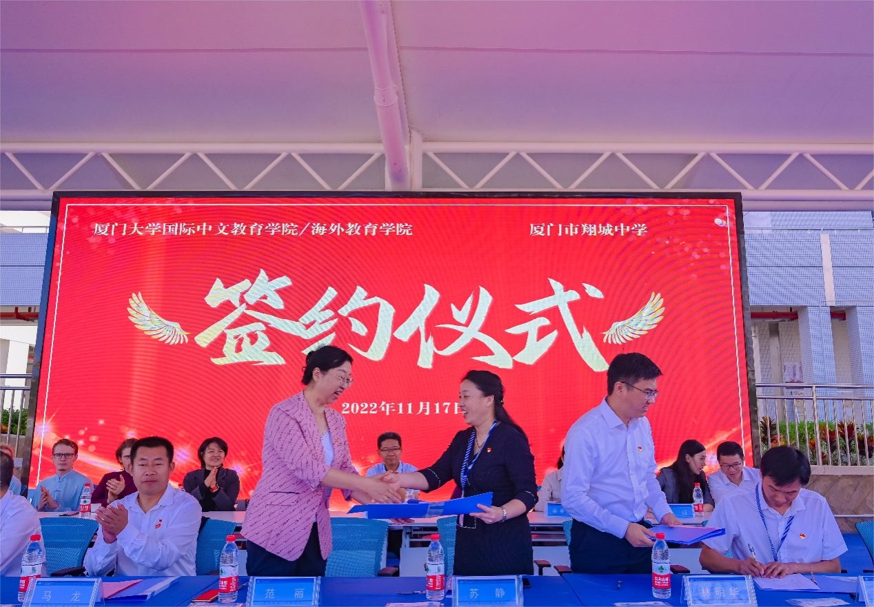 厦门市翔安区教育局,厦门大学翔安校区管委会、学生办、教务办、国际中文教育学院,厦门市翔城中学相关单位负责人出席签约仪式。