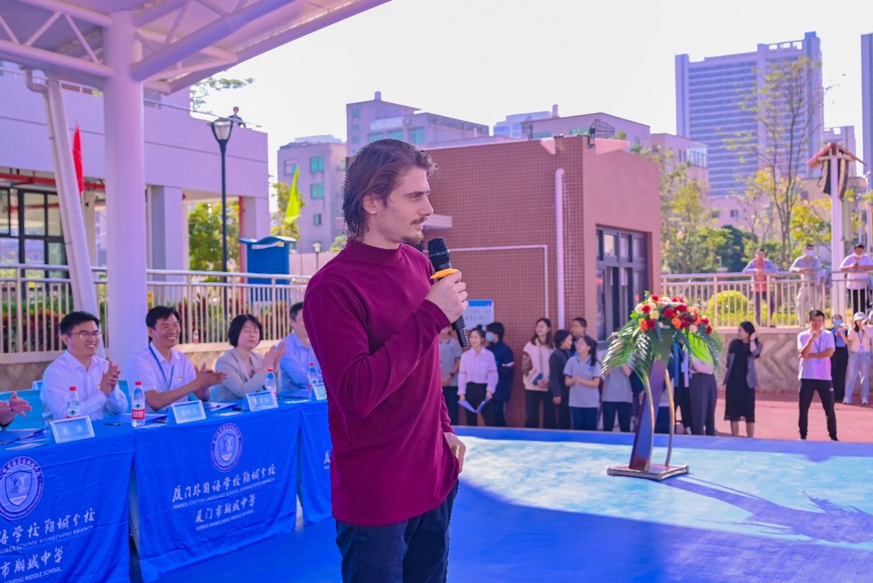 厦门大学翔安校区管委会副主任马龙在致辞中表示,厦门大学国际中文教育学院拥有汉语国际教育与中华文化传播并重、学历教育与非学历教育兼备、面授教学与远程教育并举、理论研究与应用开发并行的特色。厦门市翔城中学有着先进的国际融合教育理念和外语特色,双方优势契合,有着广阔的合作前景。此次共建,是学院加强校地合作的又一次探索,同时也是我校加快推进教育助力乡村振兴的一项重要举措。相信双方能立足资源优势,找准合作契合点,加强资源互补、人才交流和社会志愿服务等多方面合作,办好党建教育基地、实习实践基地、志愿服务基地,扎实推进共建取得实效。