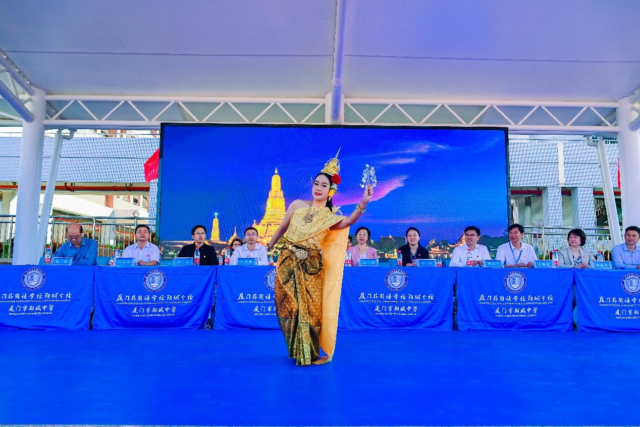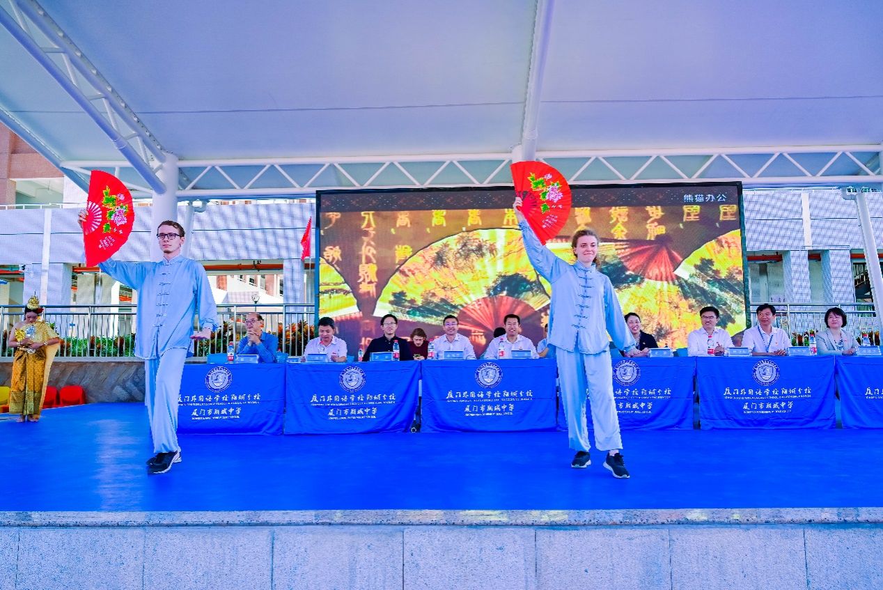 大会最后,国际中文教育学院留学生代表为到场嘉宾和翔城中学学生带来“泰国舞蹈+功夫扇”和“演讲《我和闽南话》”两场精彩表演,让在场师生们感受了多元文化魅力,了解了来华留学生的中国故事,赢得了全场观众的热烈掌声。