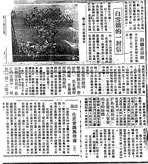 1939年5月19日,马来西亚《光华日报》登载《白雪娇的一封信》(图片来源于网络)