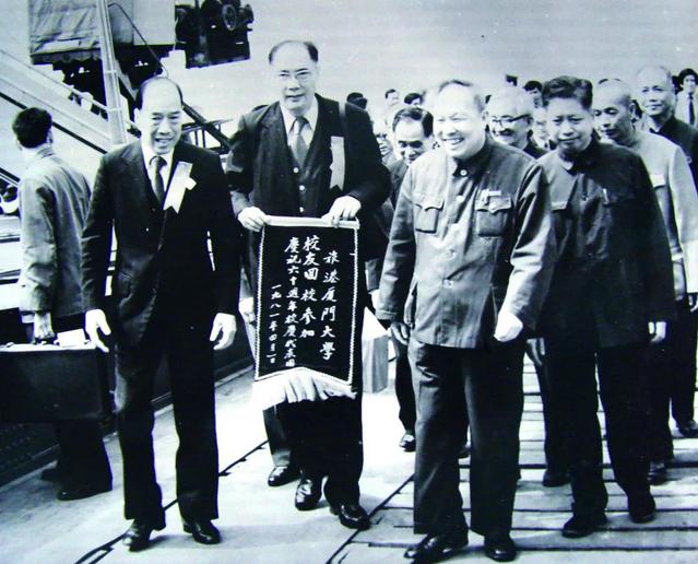 1981年,以黄克立先生(左一)为团长的旅港校友会回厦门大学参加60周年校庆