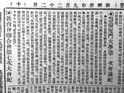 图3.1920年,《申报》报道厦大筹备委员会第一次会议