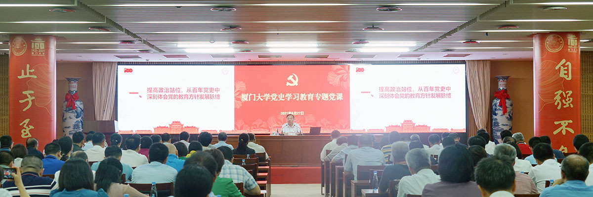 结合学习党史的体会以及对干部队伍和一流大学建设的思考,张彦从“提高政治站位,从百年党史中深刻体会党的教育方针发展脉络”“坚持贺信领航,把党的教育方针贯穿办学治校全过程”“践行新时代党的组织路线,建设一支能够有效贯彻教育方针的干部队伍”“乘势而上、奋勇争先,以高质量高标准为追求开启一流大学建设新征程”四个方面与大家交流,带领大家重温习近平总书记致厦门大学建校100周年贺信精神,并就全面贯彻党的教育方针,努力培养一支高素质专业化干部队伍,与时俱进建设世界一流大学提出要求。