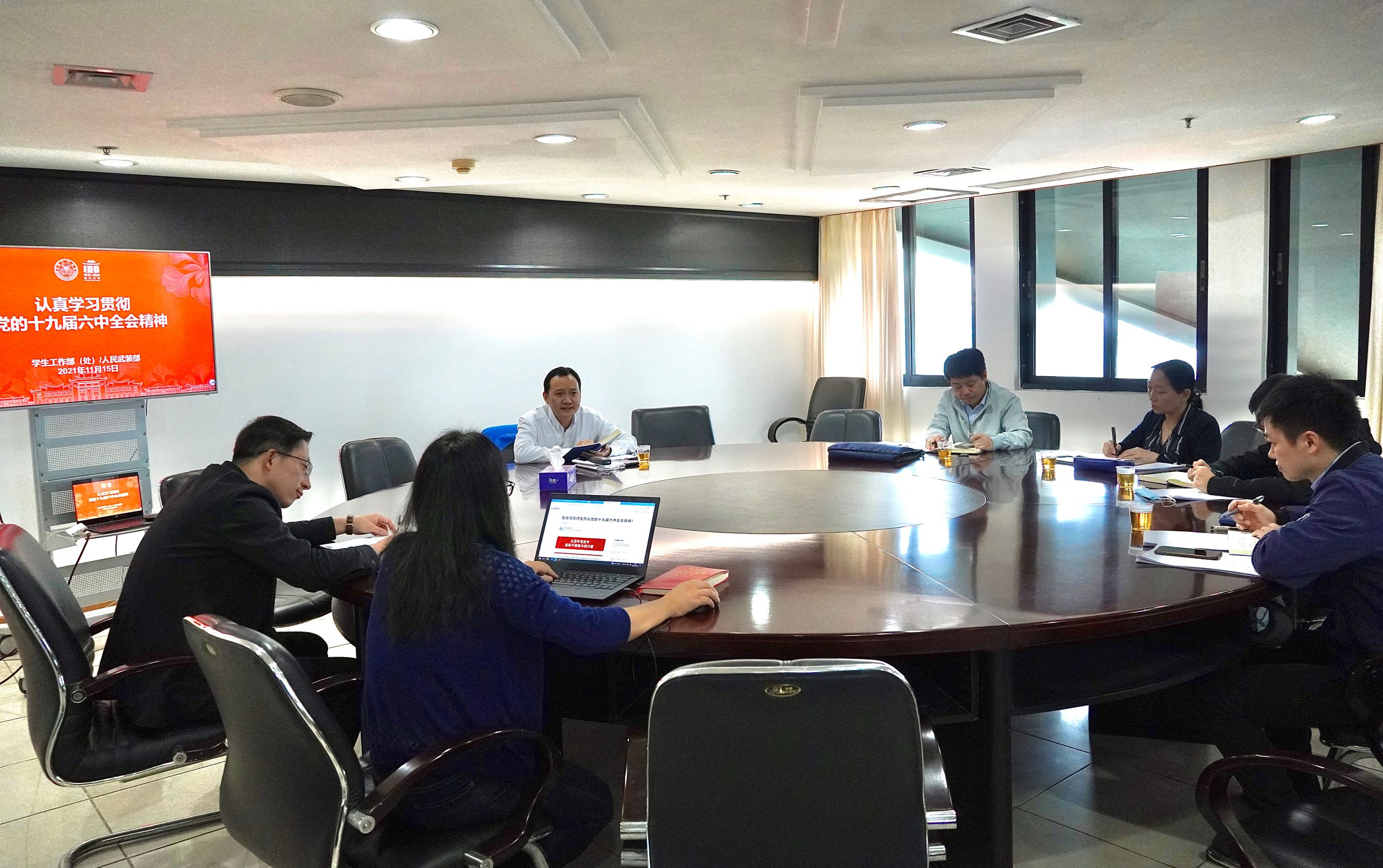 11月15日上午,学生工作部(处)在思明校区颂恩楼召开处务会扩大会议,认真学习党的十九届六中全会精神。学生工作部部长李峰主持会议。