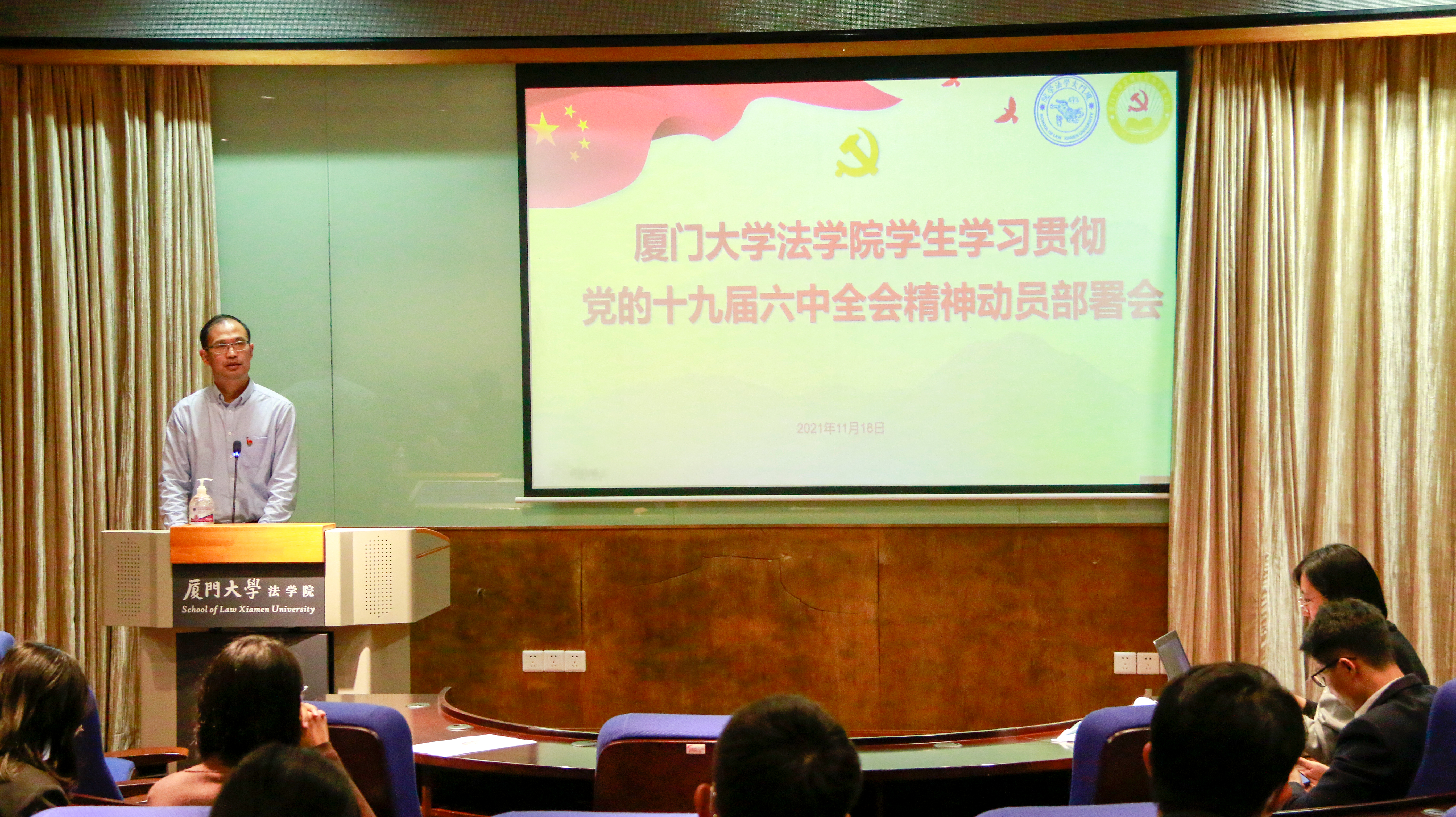 郭锦星对与会学生党员代表提出三点要求,一是抓好统筹部署,厦门大学党规党纪学生研习社与学院各学生党支部要按照学院党委的统一部署,精心组织、周密安排,结合实际、深入思考,研究贯彻落实具体措施。二是抓好系统学习,全体党员干部要带头学习、带头贯彻、当好排头兵和领头雁,把党的十九届六中全会精神列入支部理论学习重要内容,切实把全会精神传达到全体党员,引导全体党员干部把思想和行动统一到全会精神上来。三是抓好宣传宣讲,各学生组织要结合党史学习教育和“宪法宣传周”活动,充分发挥宣传媒体的主阵地作用,创新活动形式内容,着力提升学习宣传的针对性、实效性,引领全院掀起学习热潮。