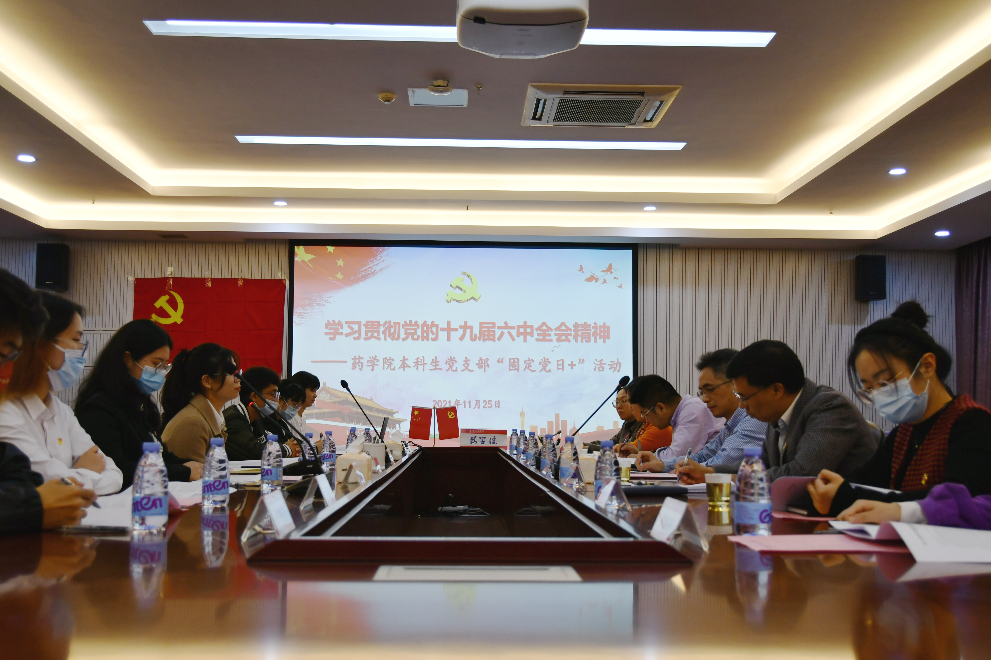 在药学院,周大旺与本科生党支部全体党员及其他师生代表共同观看了十九届六中全会相关视频,集体学习了《中共中央关于党的百年奋斗重大成就和历史经验的决议》。5位党支部成员分享了各自学习体会。周大旺认真听取了每一位同学的发言,并结合自身经历与同学们畅谈学习心得。
