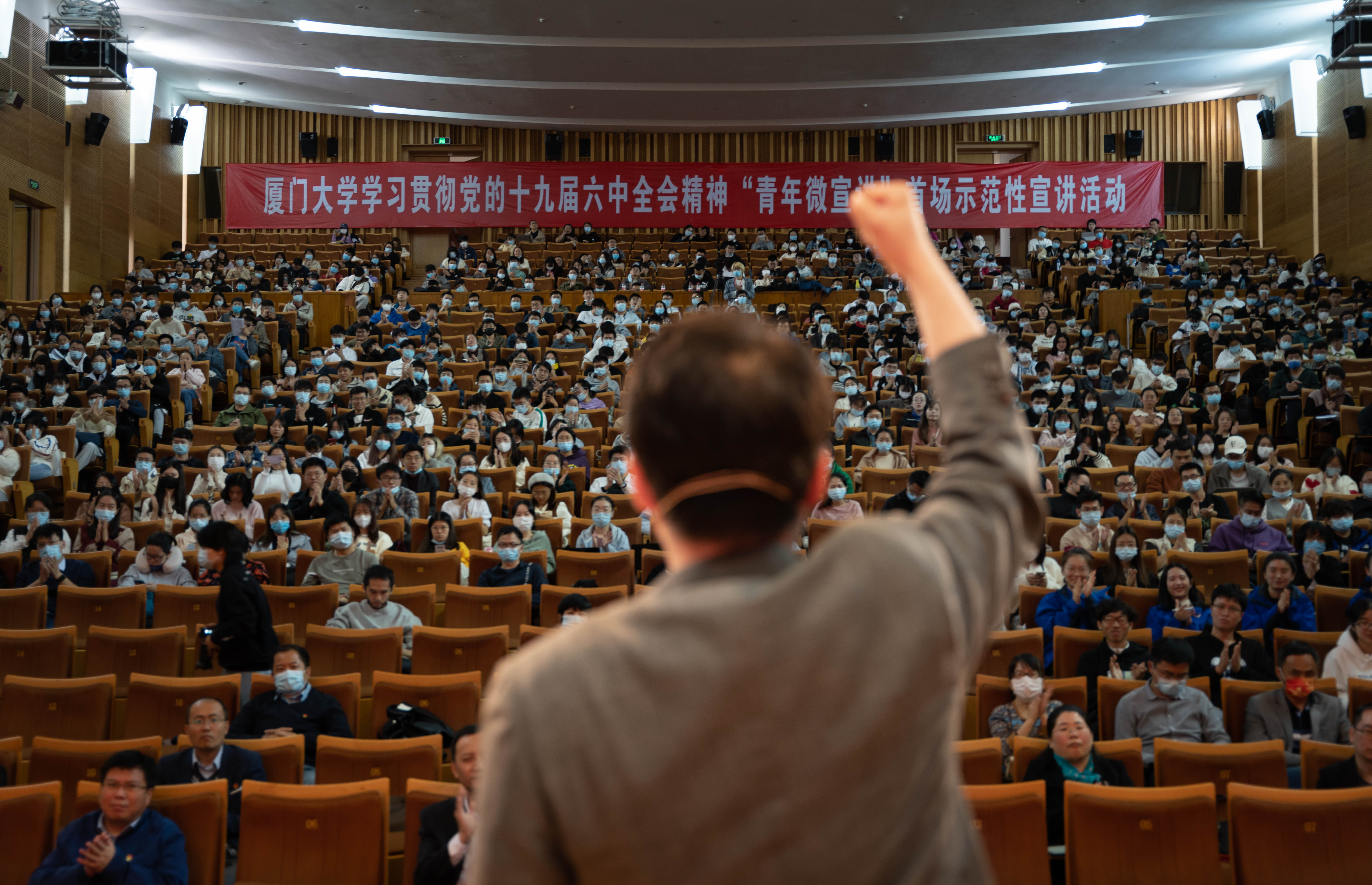 从1940年陈嘉庚的延安之行,到小康路上的幸福密码;从钱学森跌宕曲折的回国之路,到“大国重器”带给我们的自信和力量;从闽宁对口帮扶协作的山海情缘,到让青春在党和人民最需要的地方绽放绚丽之花……8位青年学生讲师或现身说法,讲述身边的故事,或提炼总结,把高深的理论娓娓道来,用接地气、有温度的语言把六中全会精神蕴含的大道理转化为一个个生动的小故事,让师生们坐得住、愿意听、用得上。