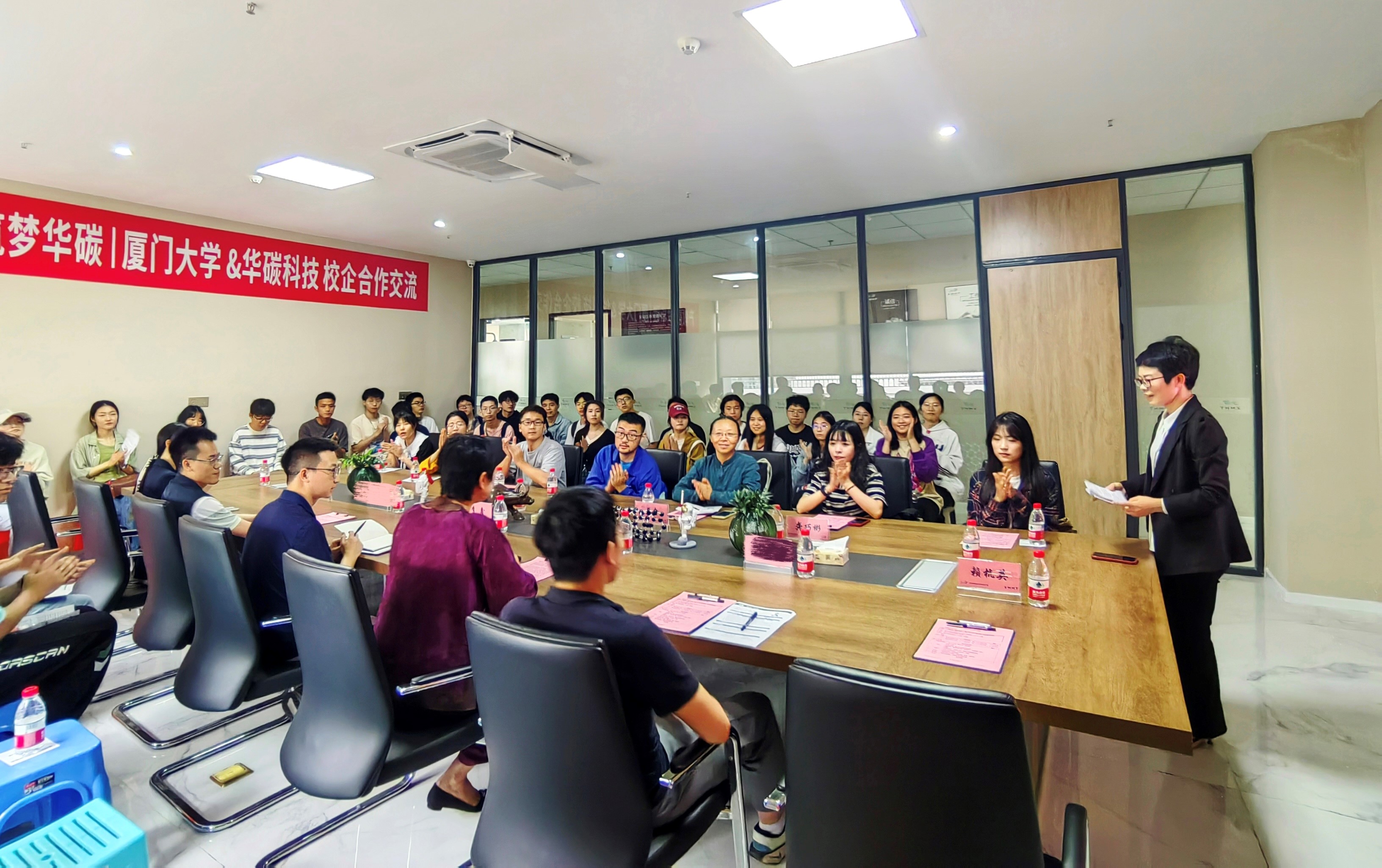 厦门华碳科技有限公司热情接待了师生一行,双方齐聚会议室进行座谈交流。