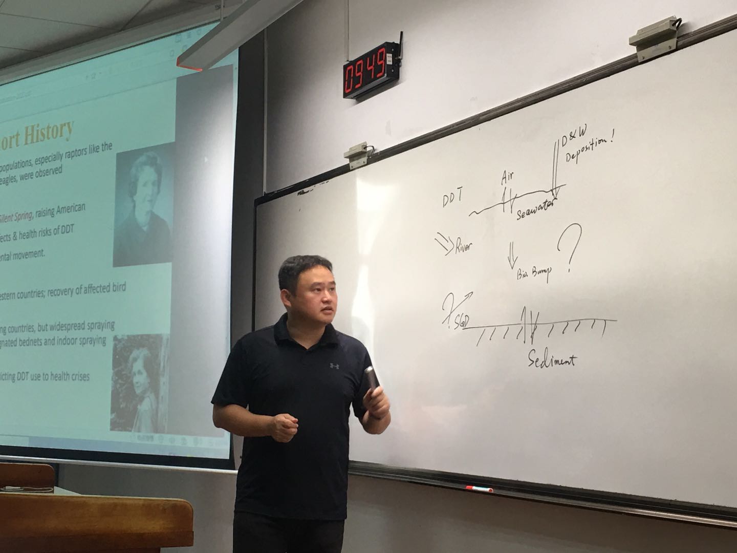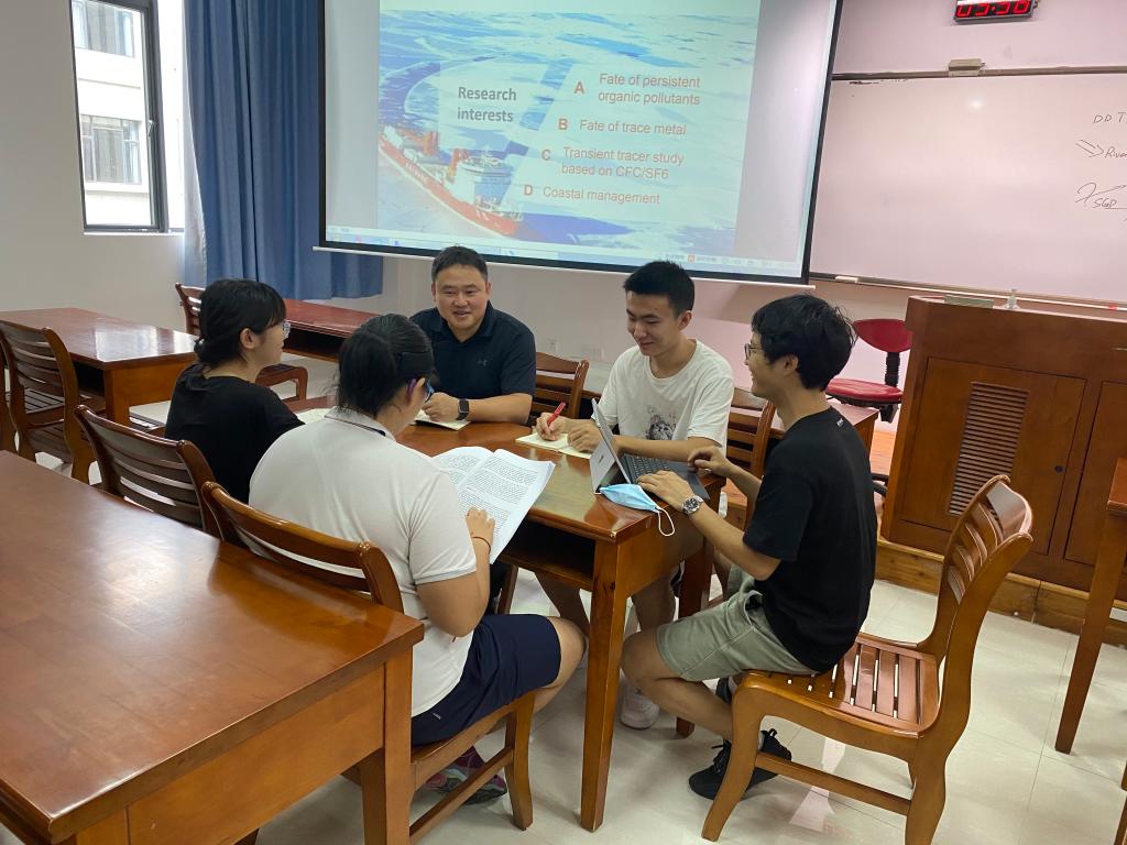 蔡明刚老师要求学生通过大量科研论文阅读及案例分析,开展密集的读写与口头报告训练,提高学生阅读本专业英文文献能力,强化对科学问题的提炼与独立思考能力,为本专业本科生进入海洋、环境等地球科学相关领域攻读硕士、博士生,提供重要、有效的过渡性训练。正如詹肖茜同学在朋友圈的“高度”总结:“三十秒签到,一分钟给答案,三分钟快速提问,五分钟讨论,十分钟展示,一周内年度观测计划。”此外,大量取自当前全球海洋生态环境问题的案例分析,有效提高学生识别与分析海洋污染问题的实际能力,为进入相关领域工作打下良好基础。