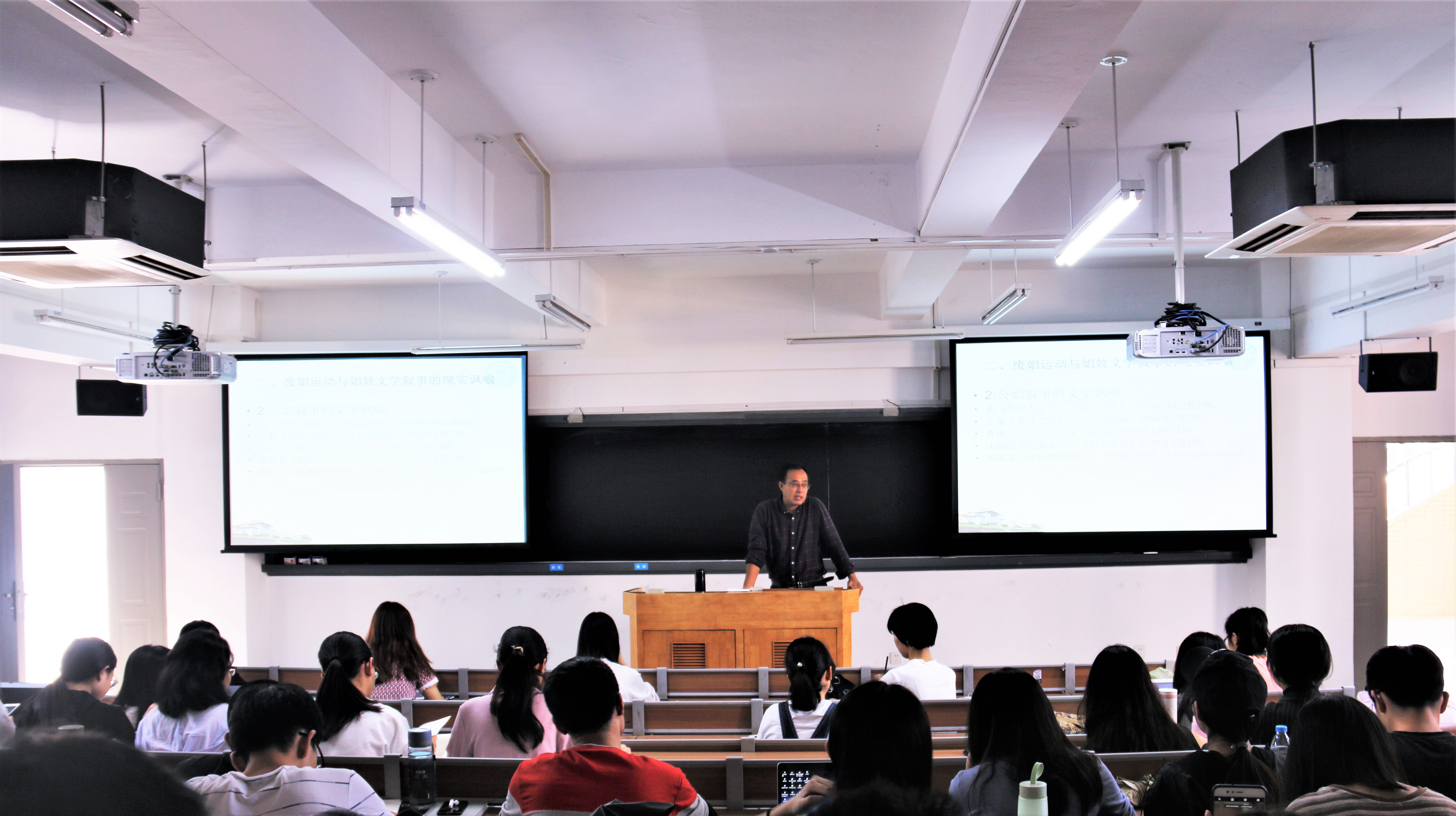 “王老师的课为我们呈现了一个专业化的、严谨的学术研究教学课堂。老师在课上并不大量地讲述内容,而是在极富思辩性的讲述的基础上,通过列举实例,援引理论,丰富教学内容,强化分析意识,突出学术研究方法的演示和研究思路的传授。” 谈到王烨讲授的《社会革命与文学叙事》,人文学院中文系2017级本科生曹译感悟良多,“通过在王老师课上的学习,我不仅了解到现代中国复杂却深刻的历史背景,还感受到了那一代研究者、作家作为知识分子的社会担当和作为。同时,我也更加走进王老师,体会到了王老师作为一个研究者的关注点和使命感。总之,不论在学术训练层面,还是思想意识层面,王老师的课都是能让我们充实自我、提高自我的一门好课。”