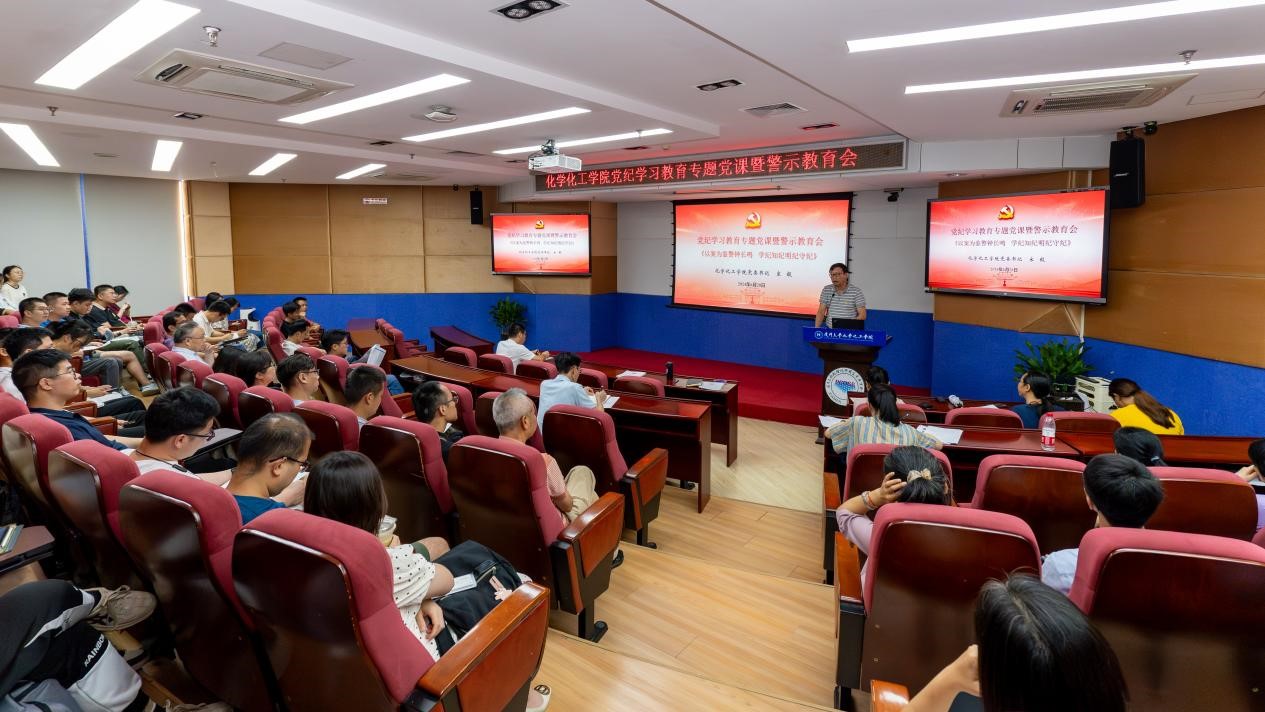 为扎实开展党纪学习教育,深入学习《中国共产党纪律处分条例》,深化《条例》理解运用,强化警示震慑,6月28日下午,化学化工学院党委在卢嘉锡楼202报告厅举行党纪学习教育专题党课暨警示教育会。学院党委书记宋毅,学院党委副书记、纪委书记刘俊杰分别讲授专题党课。