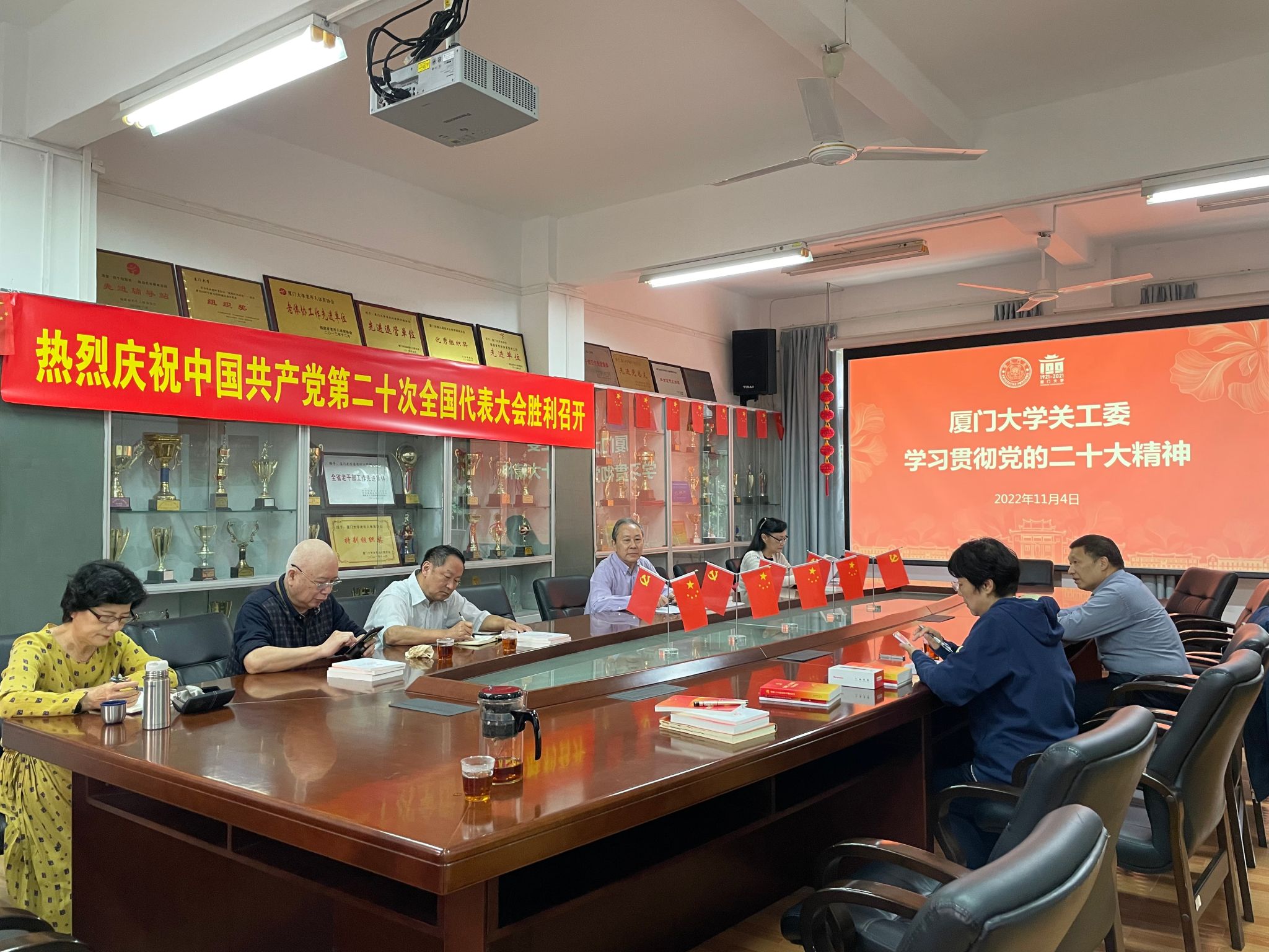 11月4日下午,校关工委在南光八号楼208会议室召开会议,组织集中学习党的二十大精神。