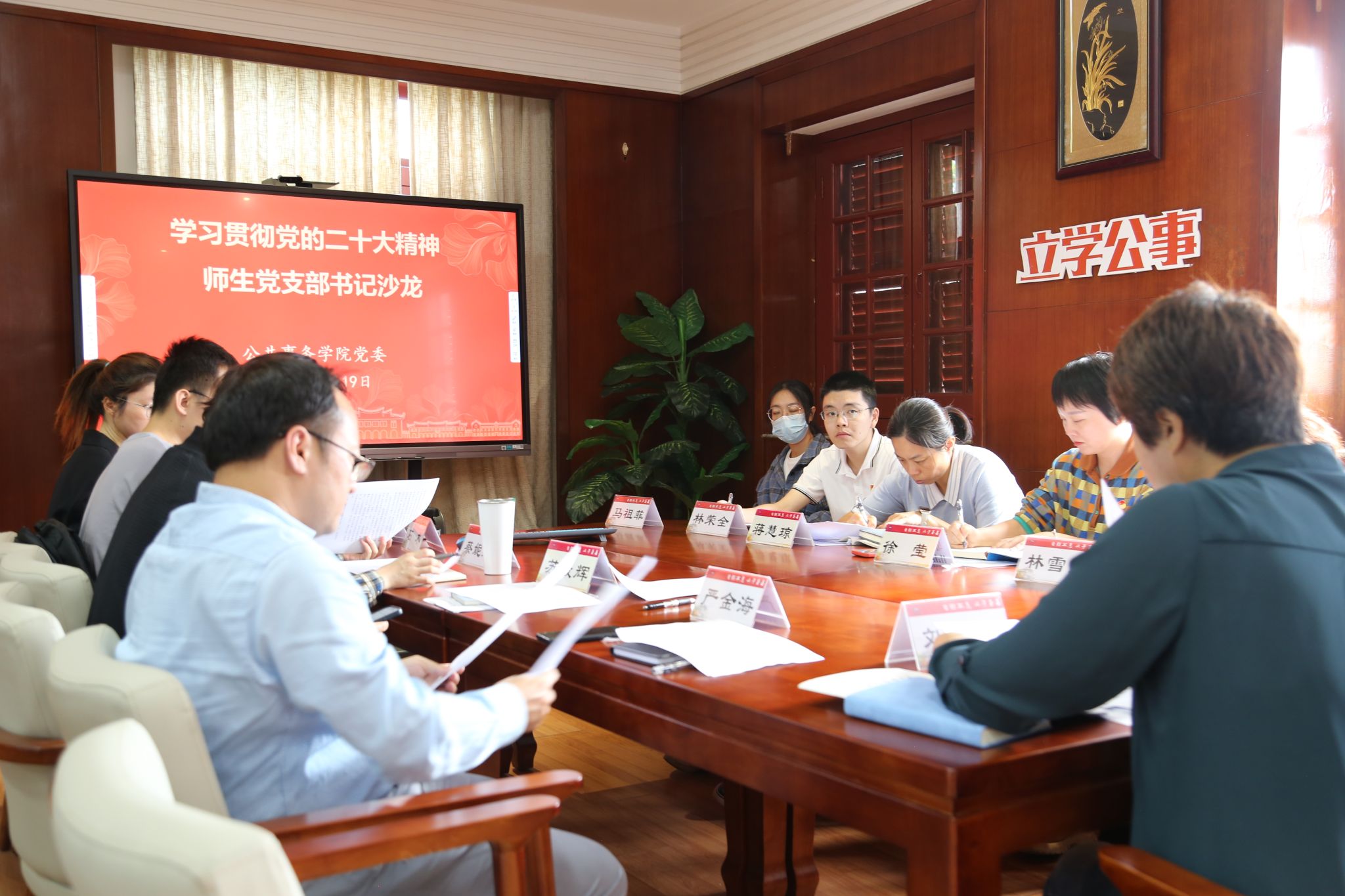 10月19日下午,公共事务学院党委举办师生党支部书记沙龙,深入学习贯彻党的二十大精神。学院师生党支部书记参会。