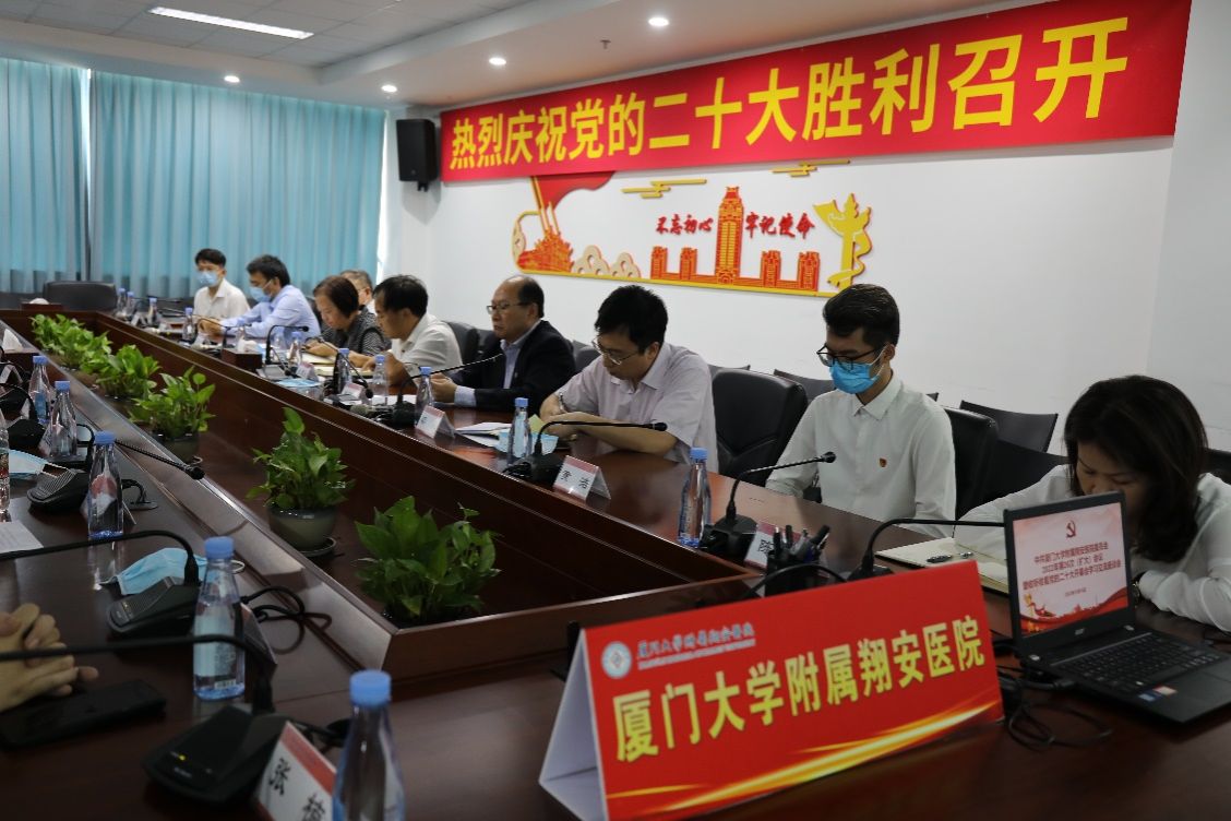 院党委副书记、执行院长张国君指出,中国共产党已走过百年奋斗历程,要认真领悟中国共产党现在的中心任务就是团结带领全国各族人民全面建成社会主义现代化强国、实现第二个百年奋斗目标,以中国式现代化全面推进中华民族伟大复兴。作为厦门大学直属附属医院,翔安医院要深入实施人才强院战略、科教兴院战略,持续优化薪酬绩效分配制度,改善提高医院职工待遇。翔安医院正处在初创发展的关键阶段,全院职工要卧薪尝胆、团结进取、奋发拼搏、踏实肯干,将党的二十大精神贯彻落实到医院建设发展实践中,努力推动医院高质量发展,更好服务健康中国建设。