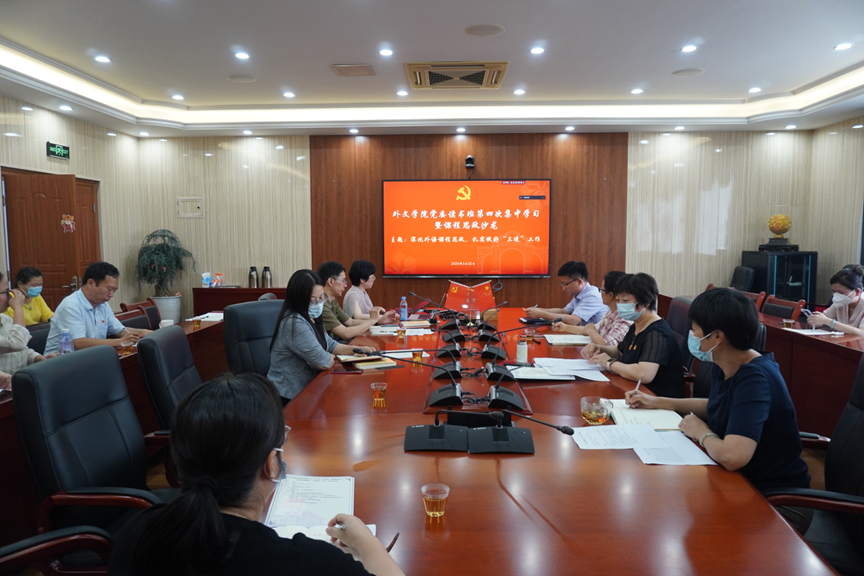 5月22日下午,外文学院开展党员领导干部读书班第四次集中学习暨课程思政沙龙,围绕“深化外语课程思政,扎实做好‘三进’工作”开展学习研讨。中山大学外国语学院许德金教授应邀作“外语课程思政建设与‘三进’工作”主题讲座。读书班由学院党委书记徐琪主持,学院党员领导干部、党委委员、系部主任(副主任)、教工党支部书记等参加学习。