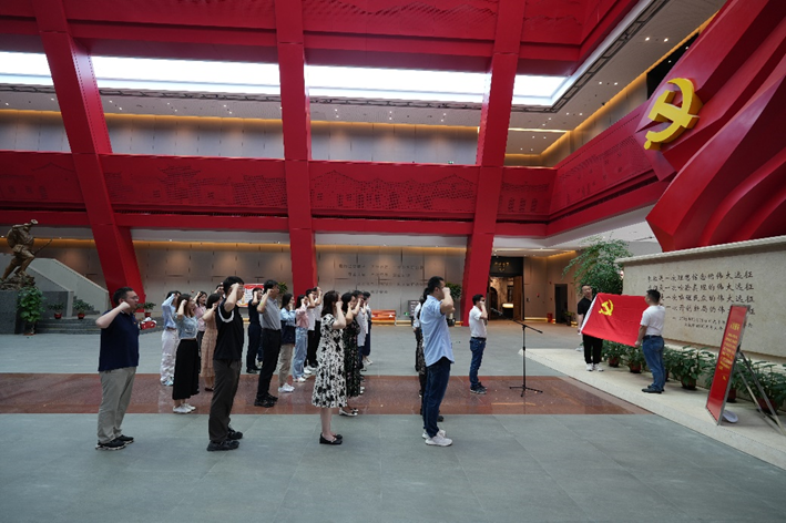 党员们先后走进宁化县长征精神教育基地、淮土镇凤凰山中央红军长征出发地核心展示园、下曹中央红军村和北上抗日先遣队展示陈列馆,瞻仰红色遗迹和红色文物,追忆艰苦卓绝的峥嵘岁月,感悟革命英烈的崇高精神。在宁化县革命纪念馆,左正宏带领党员们面向党旗庄严宣誓,重温入党誓词。