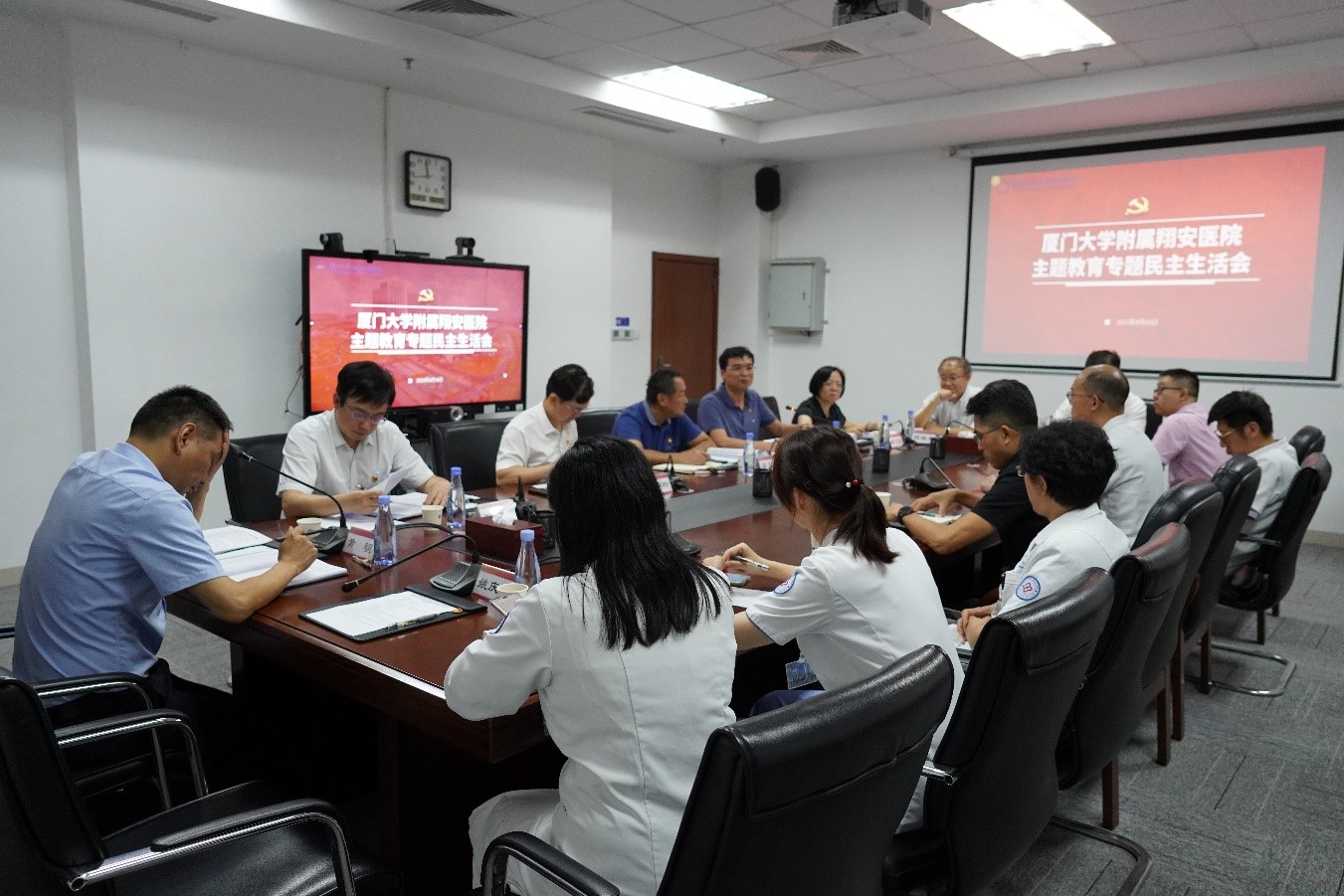 8月30日,附属翔安医院党委召开学习贯彻习近平新时代中国特色社会主义思想主题教育专题民主生活会,校主题教育第一巡回指导组组长、党建联络员梁卫中到会指导,院党委书记左正宏主持会议,院领导班子和职工代表参加会议。